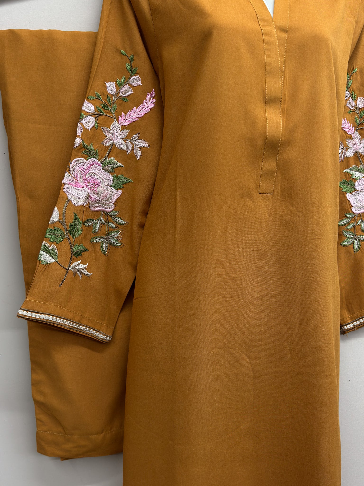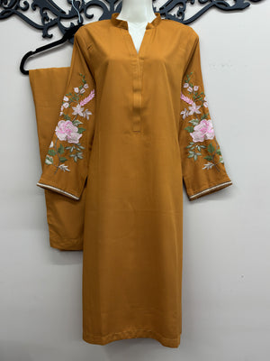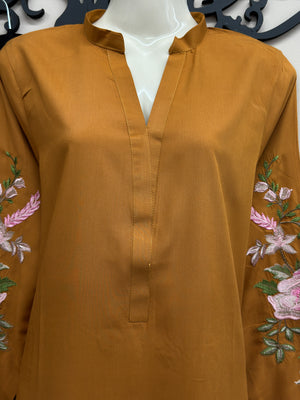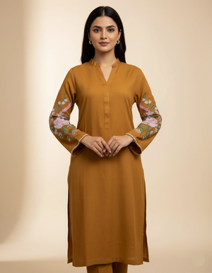 Introducing our Beautiful 2-Piece All-Season Wear Dress. Crafted from high-quality Bosky linen, this outfit offers luxurious comfort and softness. The full sleeves are elegantly embroidered, while the back and front remain plain for a sleek look. Paired with plain trousers, this ensemble is perfect for any season, combining style and simplicity with exceptional stitching quality.