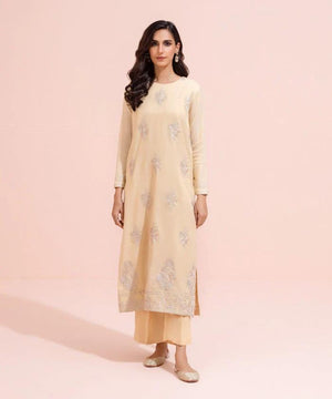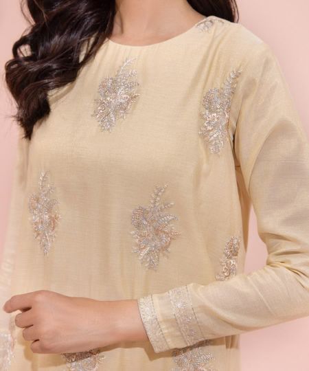 Make a statement in our stunning Sapphire Embroidered Masoori 2pcs Suit in beige. Featuring a 2-Piece Straight Kurta with embroidered detailing on the front and plain back, paired with silk trousers, this ensemble is sure to turn heads. Crafted from Masoori and blended raw silk, with full sleeves and a crew neckline, this suit will take you from day to night in style.