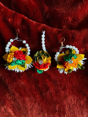 Multi-Color Artificial Ghajra set earrings tika