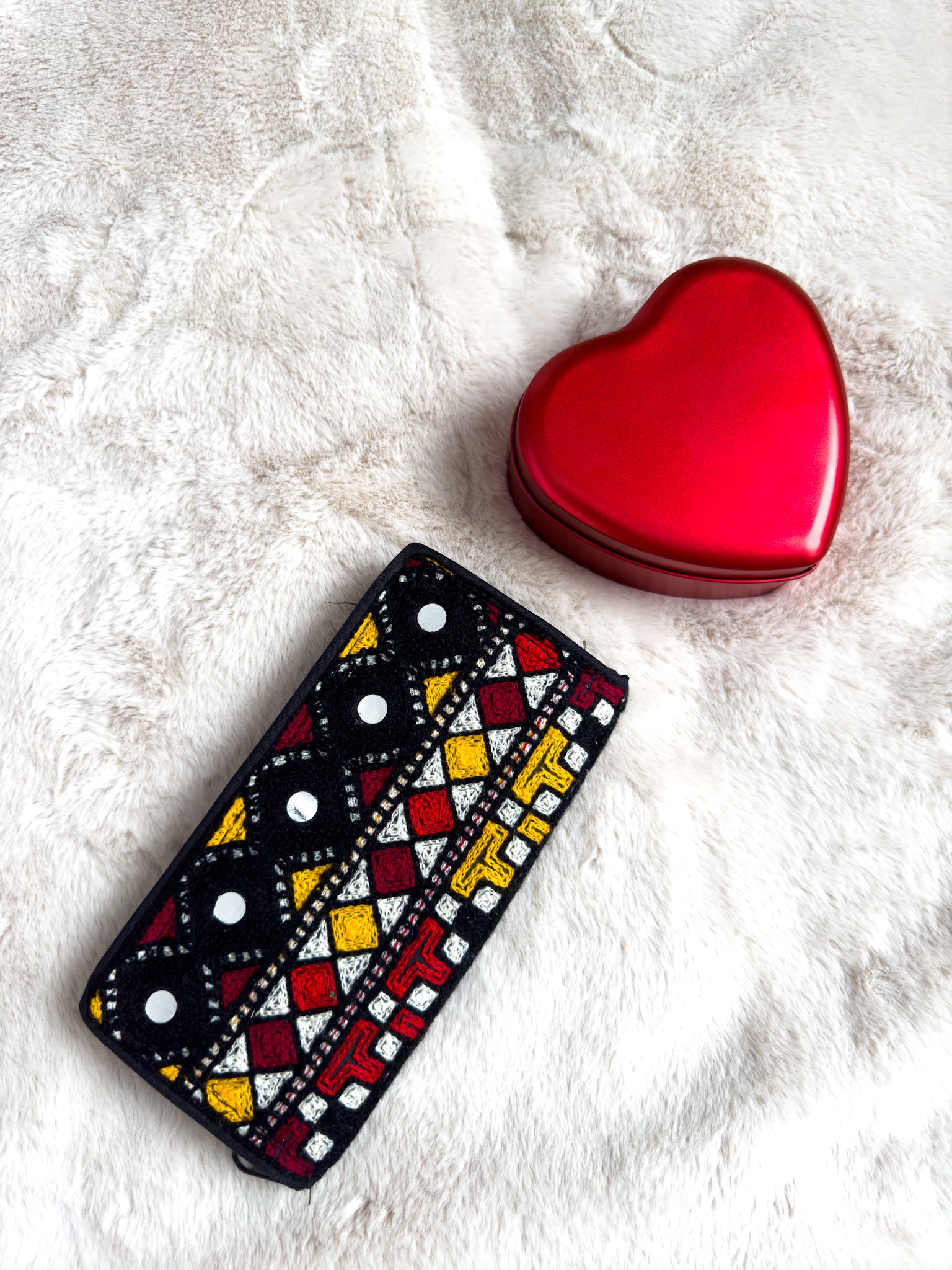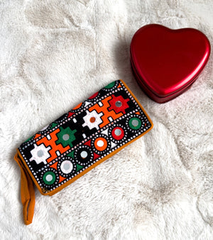 Stunning embroidered zippered clutch in a traditional afghani style with a hard casing