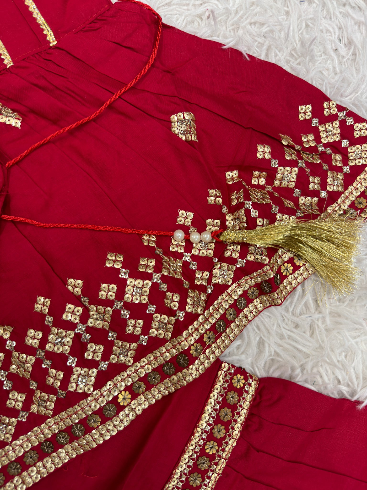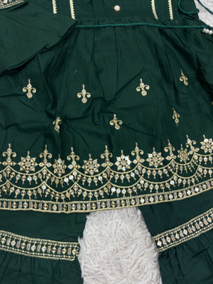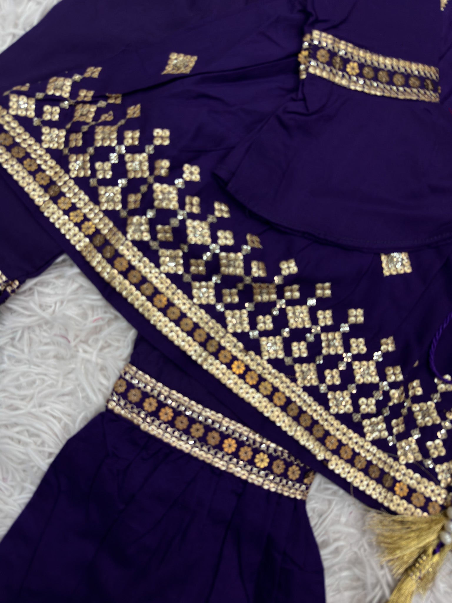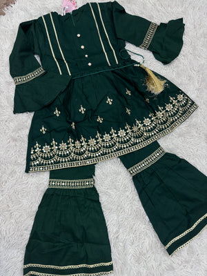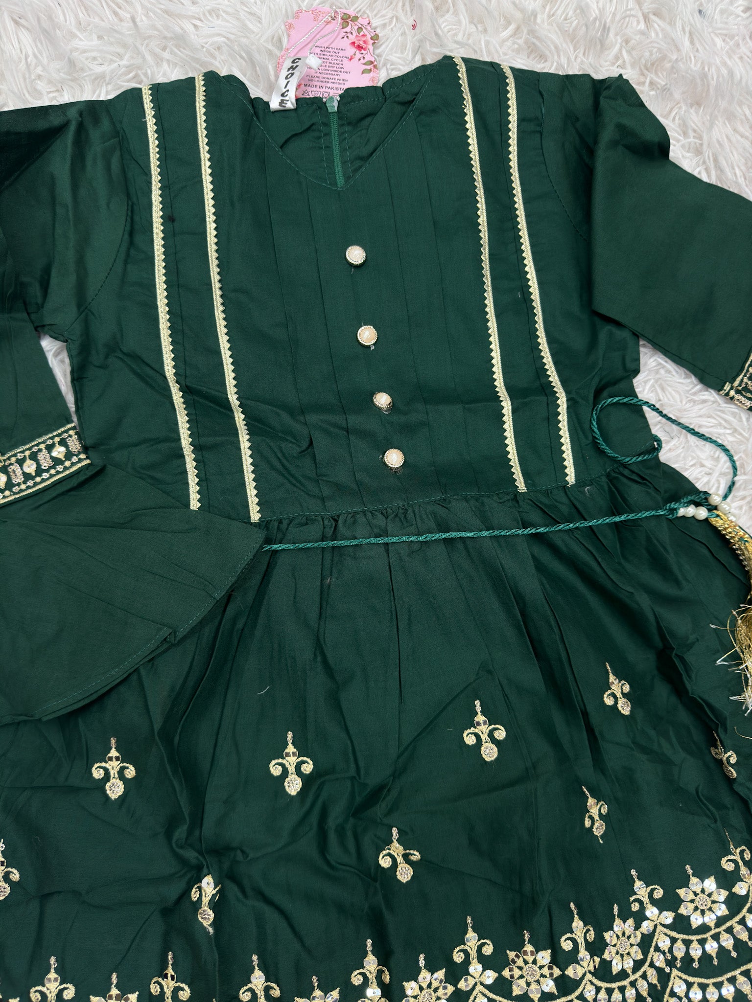 Explore the elegance of traditional wear with Baby Choice, available at Maryam Qasim Boutique. These soft cotton 2-piece Gharara outfits are beautifully crafted with intricate mirror embroidery*, gota lace, and sequin detailing. The adjustable belt ensures a comfortable fit, while the convenient back zipper makes dressing easy. Perfect for any occasion, these outfits blend style and comfort, making them an ideal choice for your little ones.