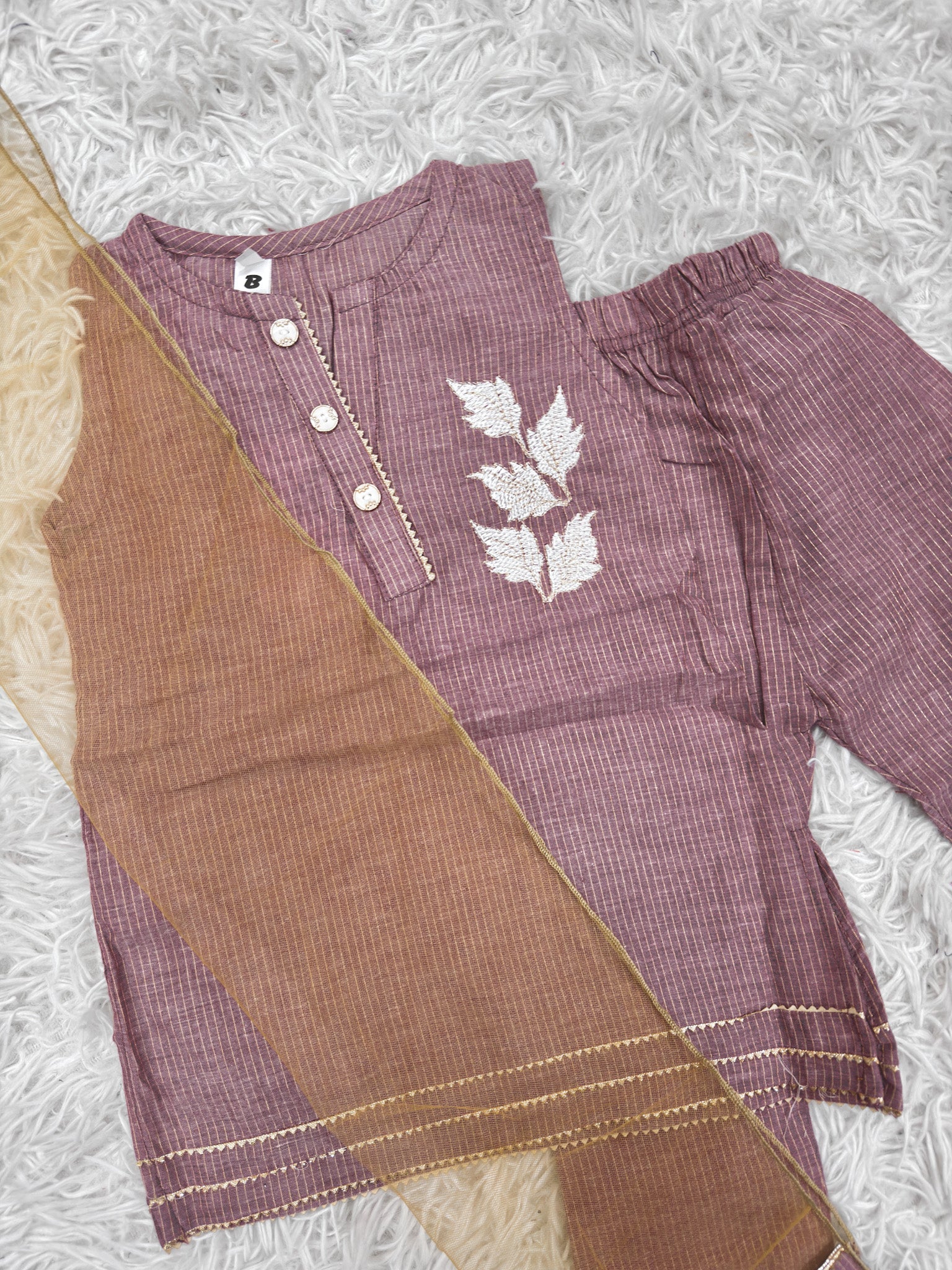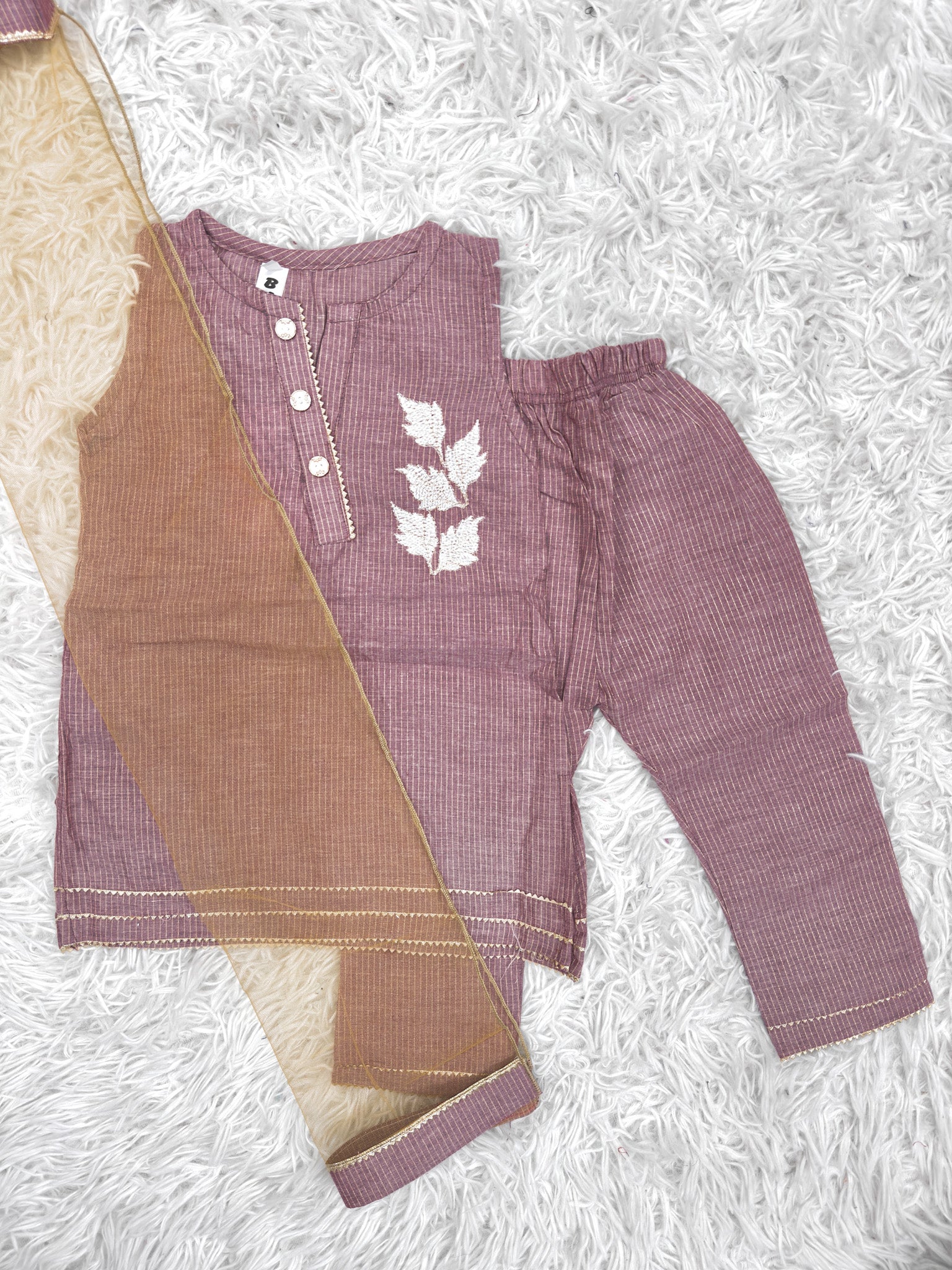 Introducing the Baby Choice Cotton Lawn Toddler Outfit, available at Maryam Qasime Boutique. Made from soft and breathable cotton lawn, this outfit is designed with intricate gota lace stitching and delicate embroidery for a classic look. Paired with an elegant, lightweight net dupatta, it offers both comfort and style for your toddler. Perfect for special occasions or casual events, this outfit combines tradition and ease, making it an ideal choice for your little one.