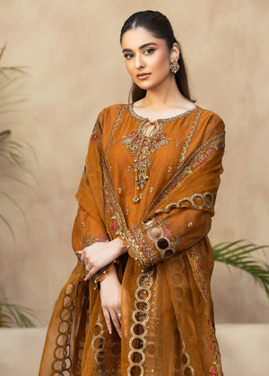 Refine your formal wardrobe with this exquisitely crafted Rustic Brown Organza 3-Piece Suit, designed to exude luxury, grace, and timeless sophistication. The short kurta is tailored from premium organza, adorned with intricate embroidery that enhances its elegant silhouette.