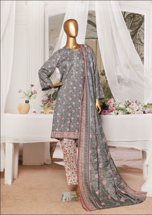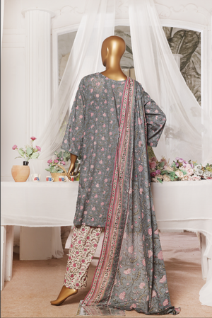3-Piece Original Bin Saeed Light Grey Printed Lawn Stitched Suit
