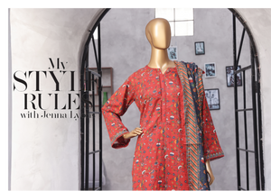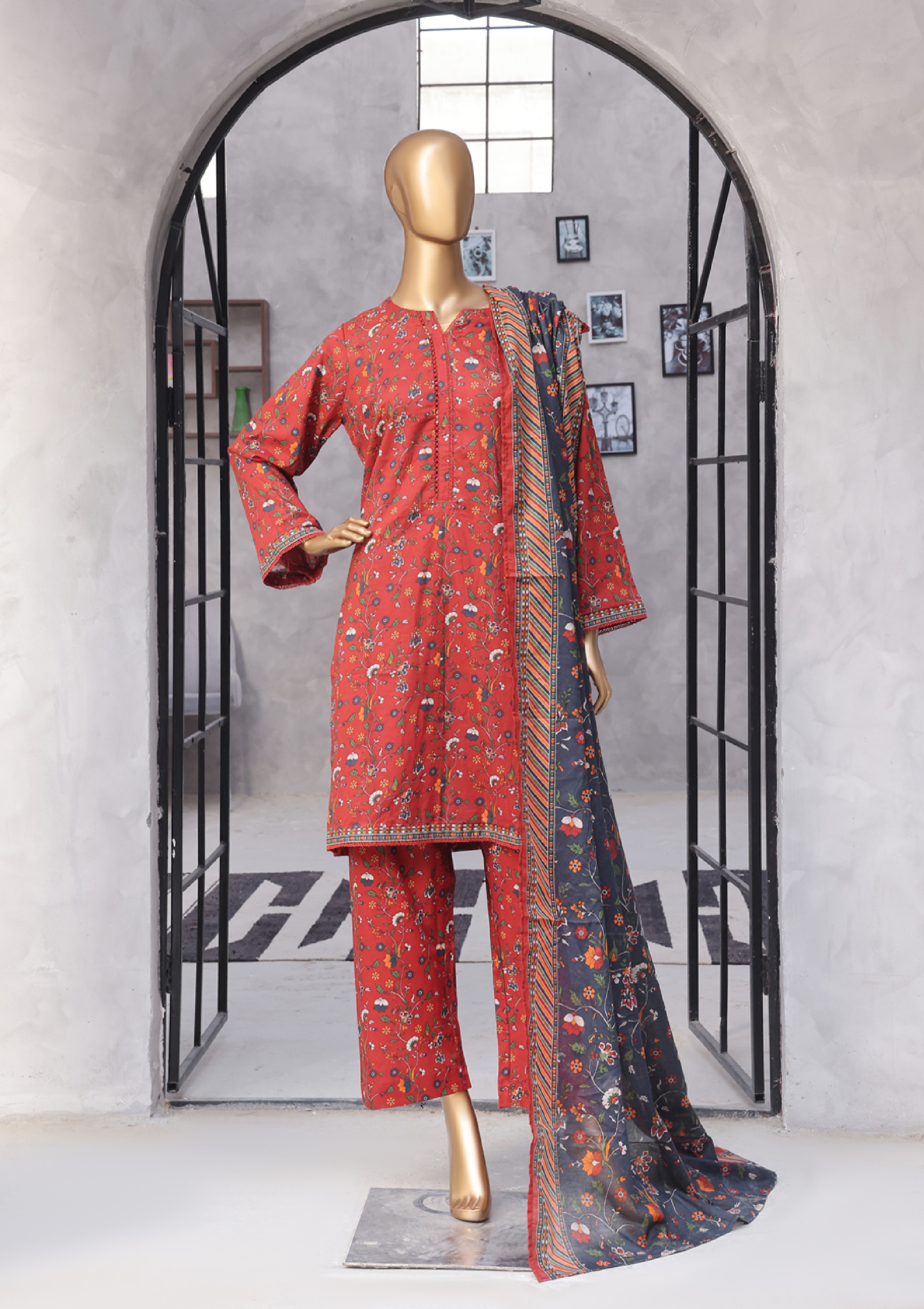 3-Piece Original Bin Saeed Red Printed Lawn Stitched Suit
