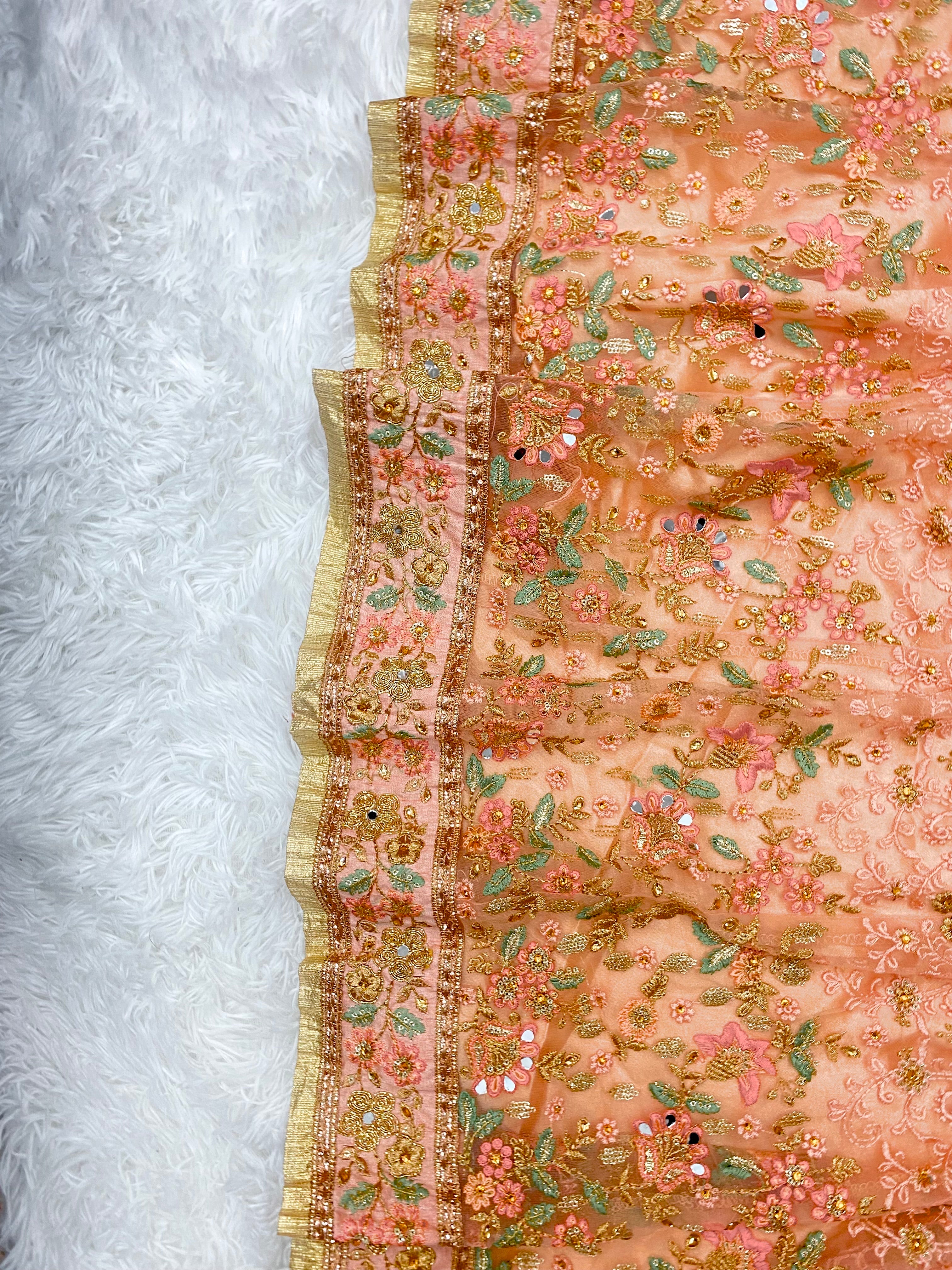 Completely embroidered Dupatta and with all four sides having piping and gota lace