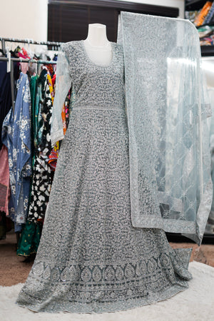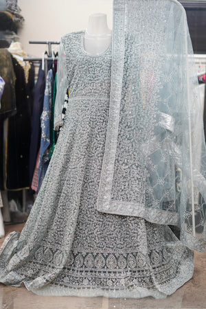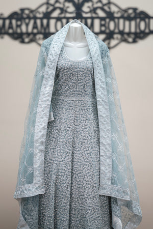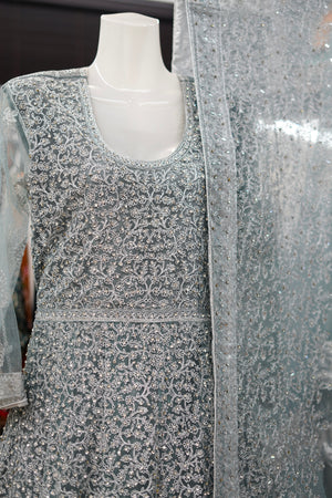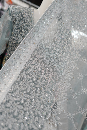 • Color: Soft pastel blue with intricate silver embellishments
