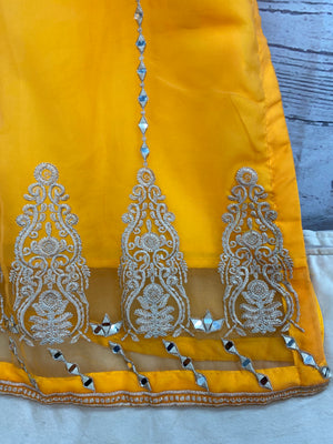 Orange Organza Real Mirror work Suit (3PC)