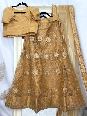 Stunning Golden Brown Net Lehenga with a Silk Blouse