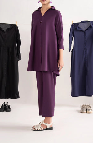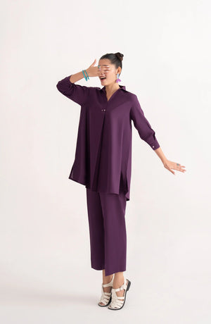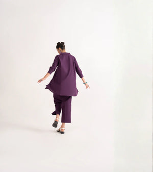 Add a pop of refined color to your casual wardrobe with the Casual Lite Like a Bird Printed Premium Linen 2 Piece Dress from the Casuals Pre Fall Collection. Featuring the elegant Violet Frame design in a rich purple shade, this outfit blends modern print aesthetics with everyday comfort.