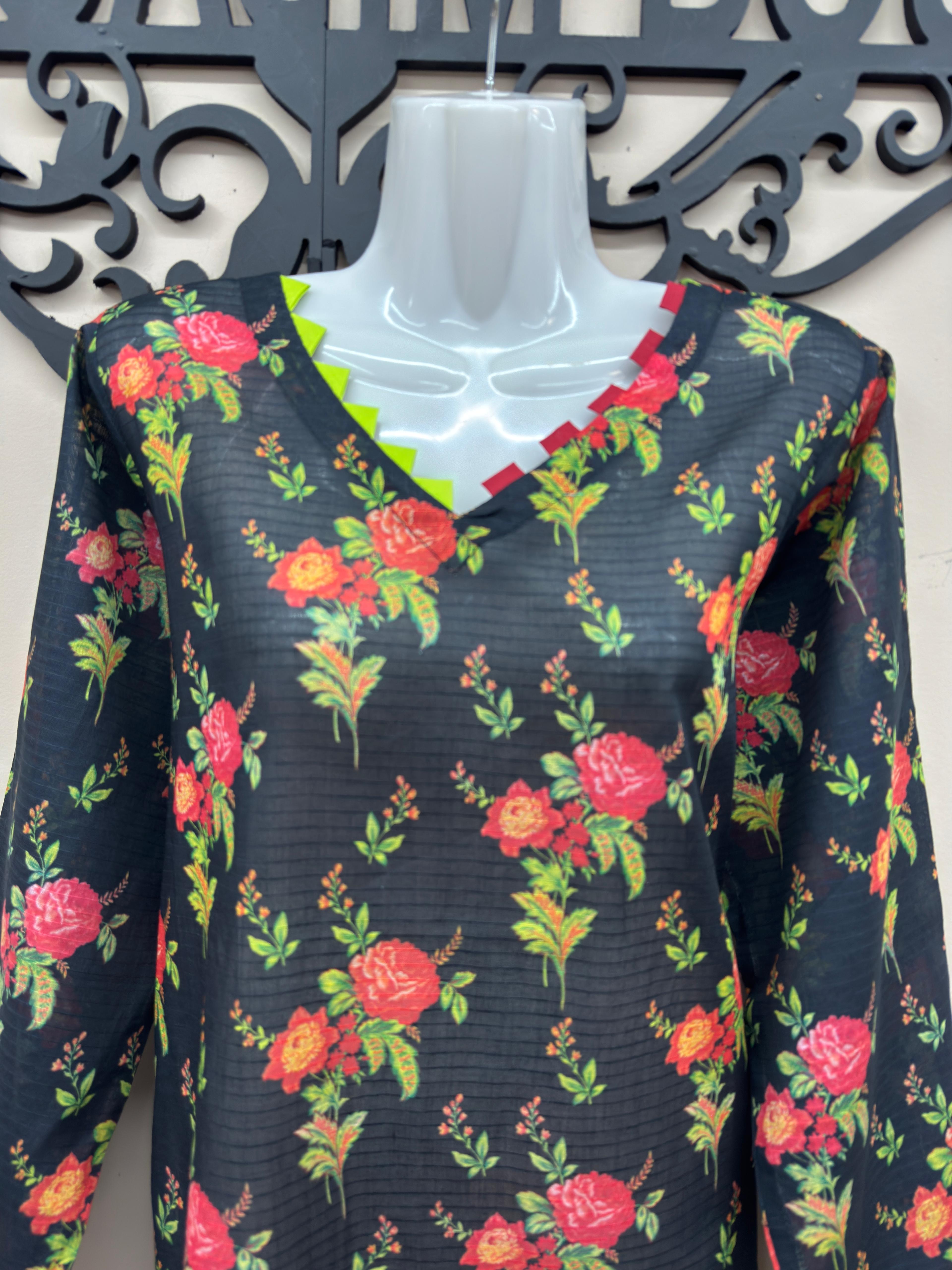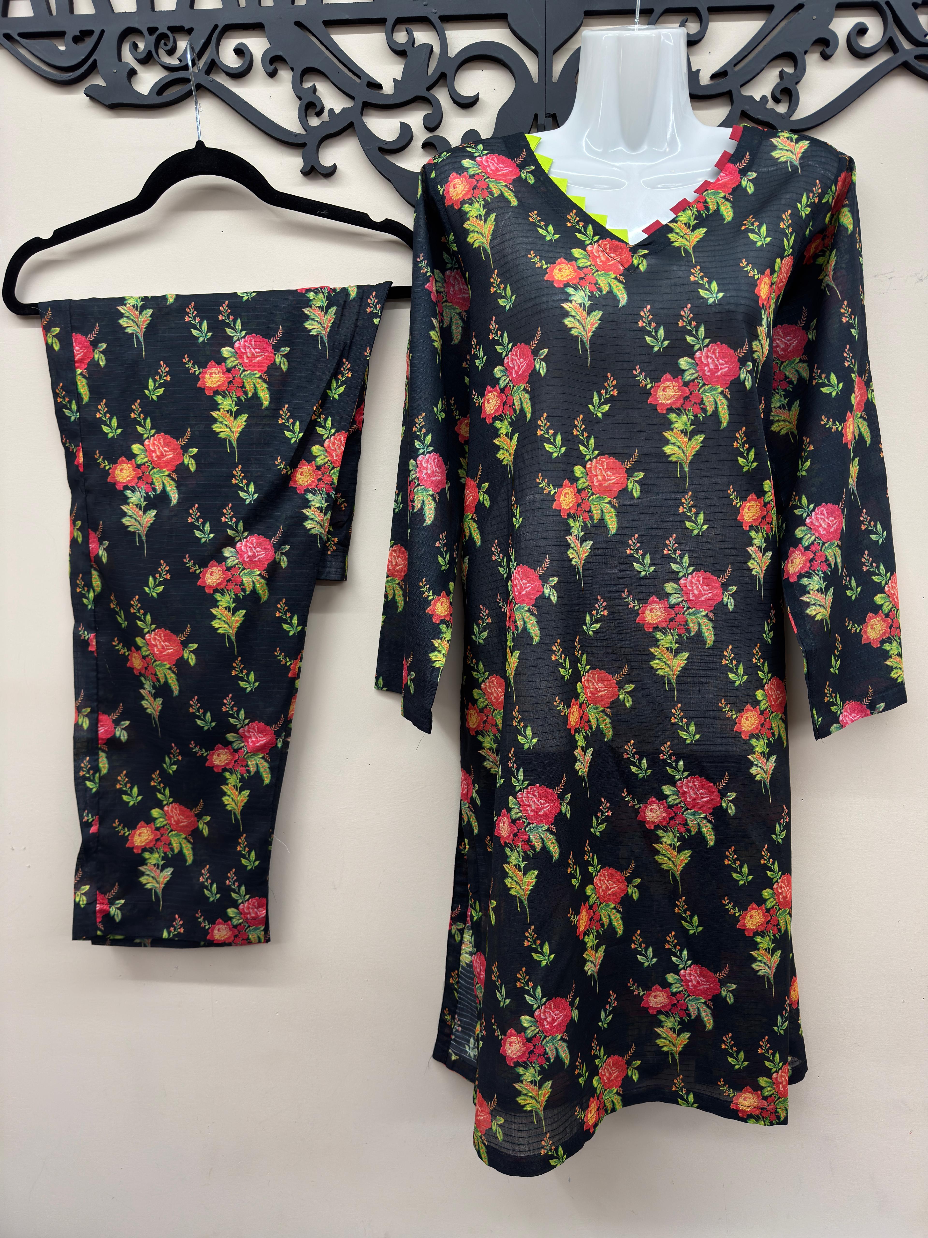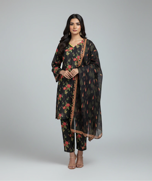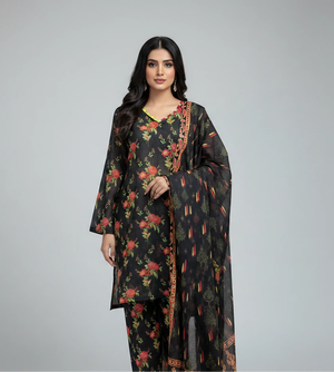 3 Pcs Black Lawn Printed Suit for Women – Summer