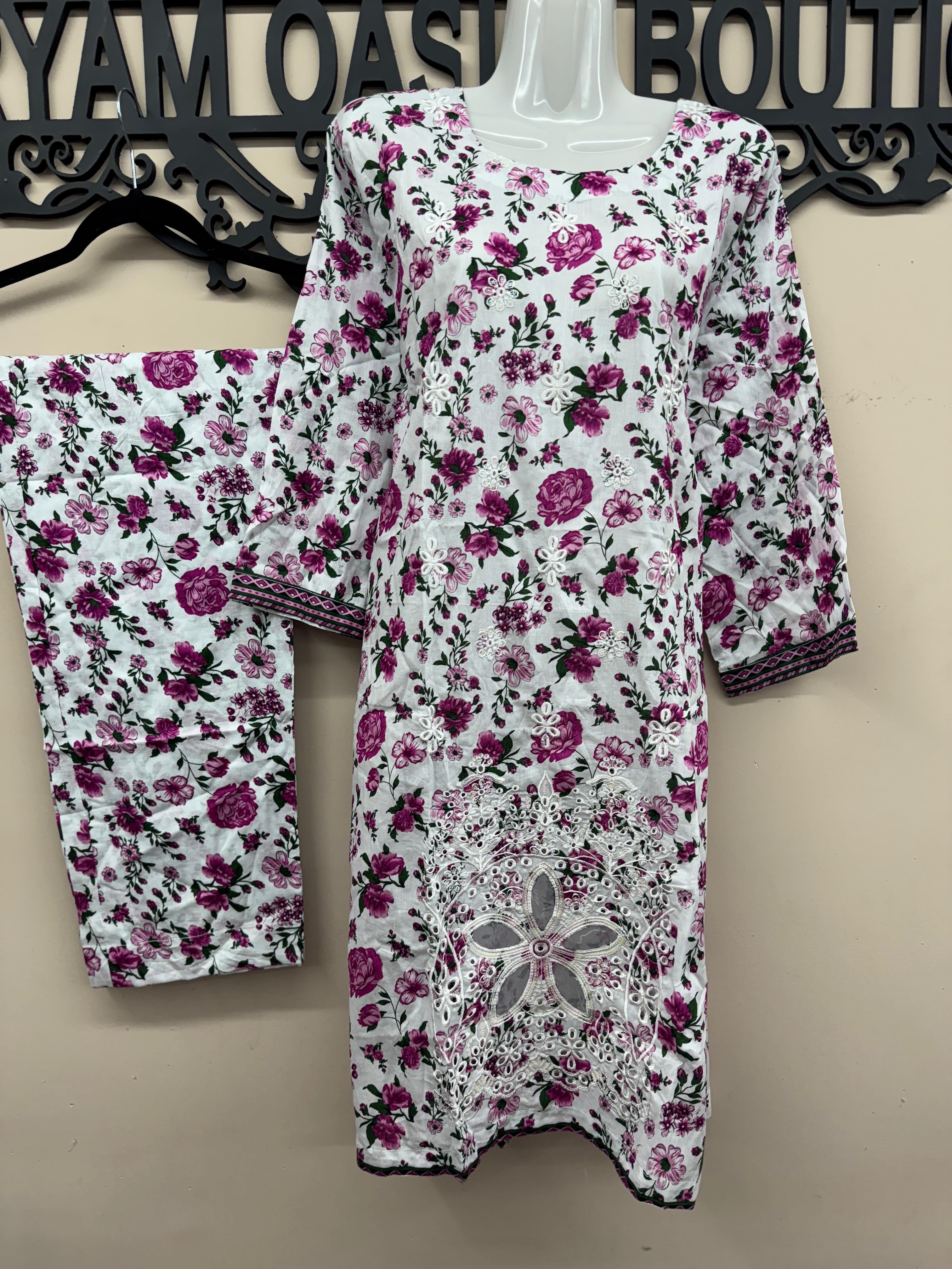 ✨ A beautiful choice for summer gatherings, casual wear, or festive days, this suit combines fresh floral prints with embroidery details to give you both elegance and comfort.