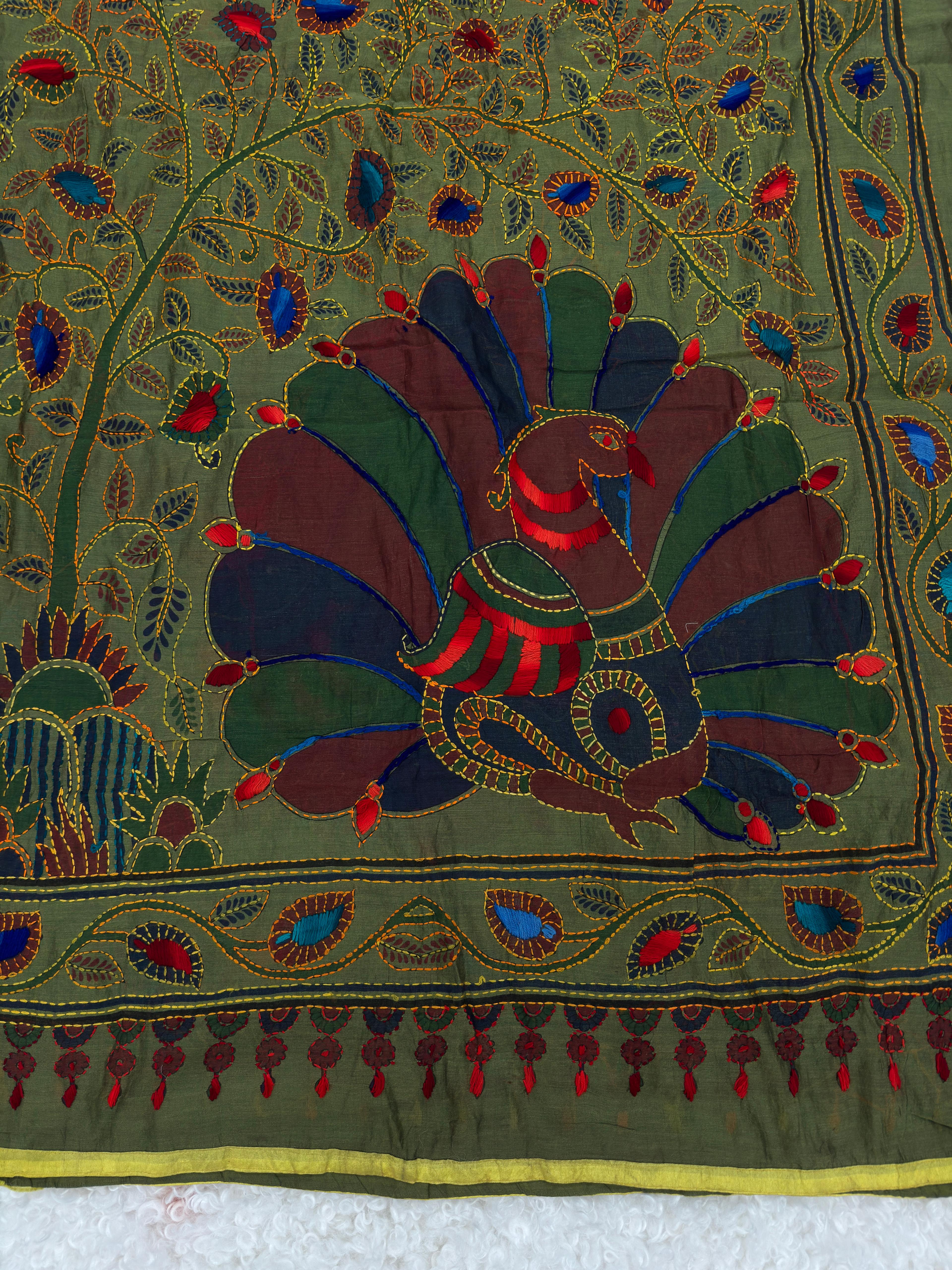 Cotton Hand-Embroidered Dupatta with Lace Border – Elegant & Lightweight