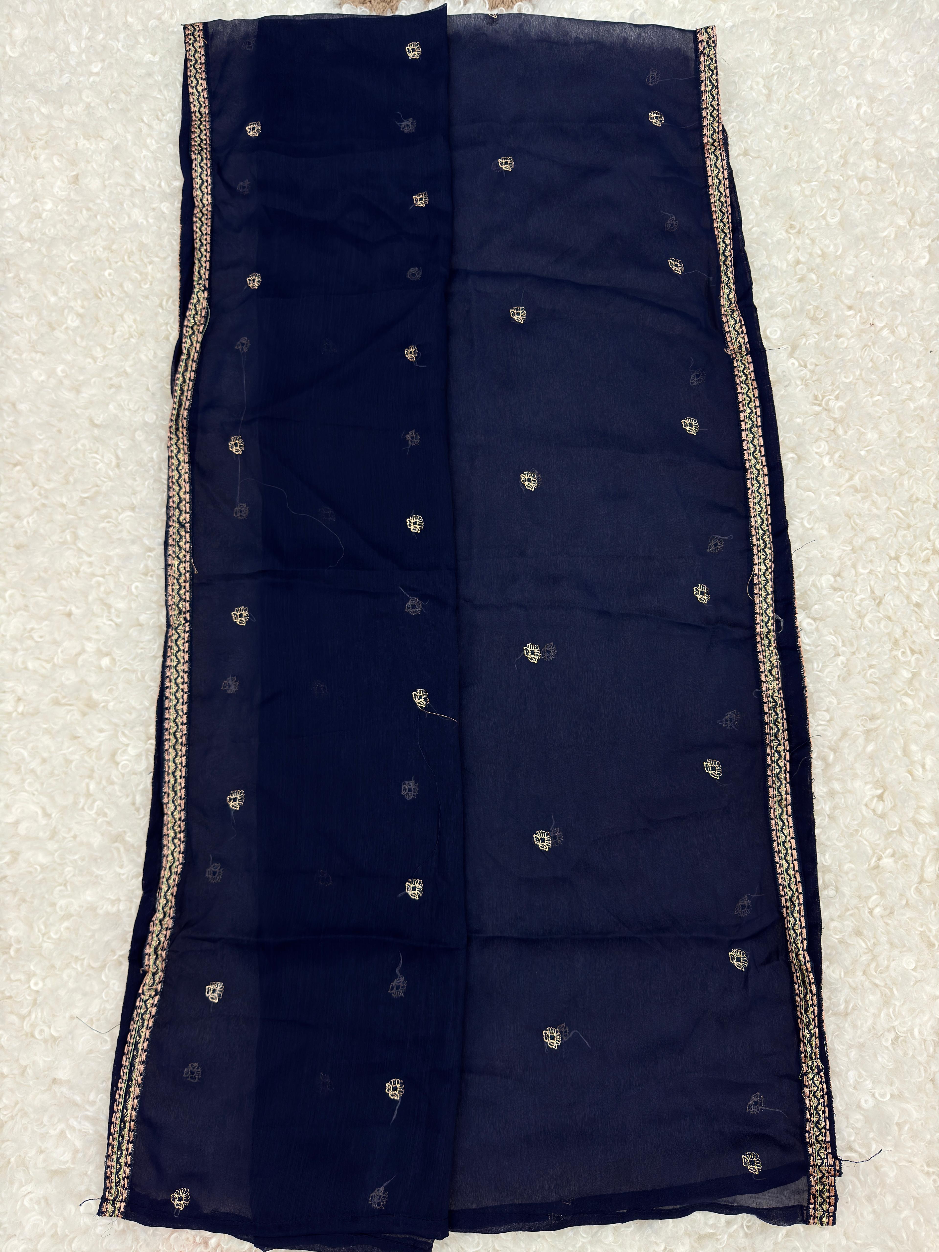 Navy Blue Chiffon Dupatta with Peach & Golden Embroidery