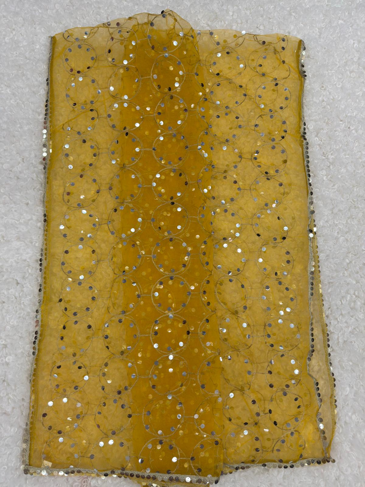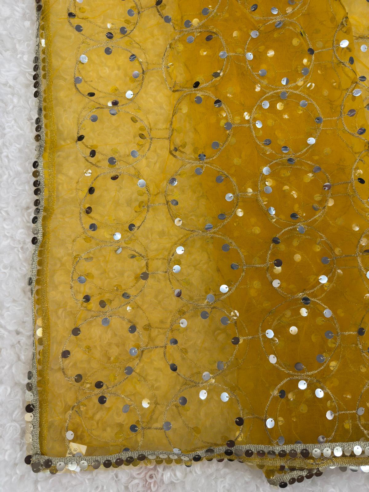 Beautiful net dupatta adorned with shimmering sequin and delicate zari embroidery. Lightweight and graceful, perfect for weddings, parties, and festive wear.