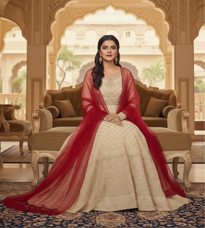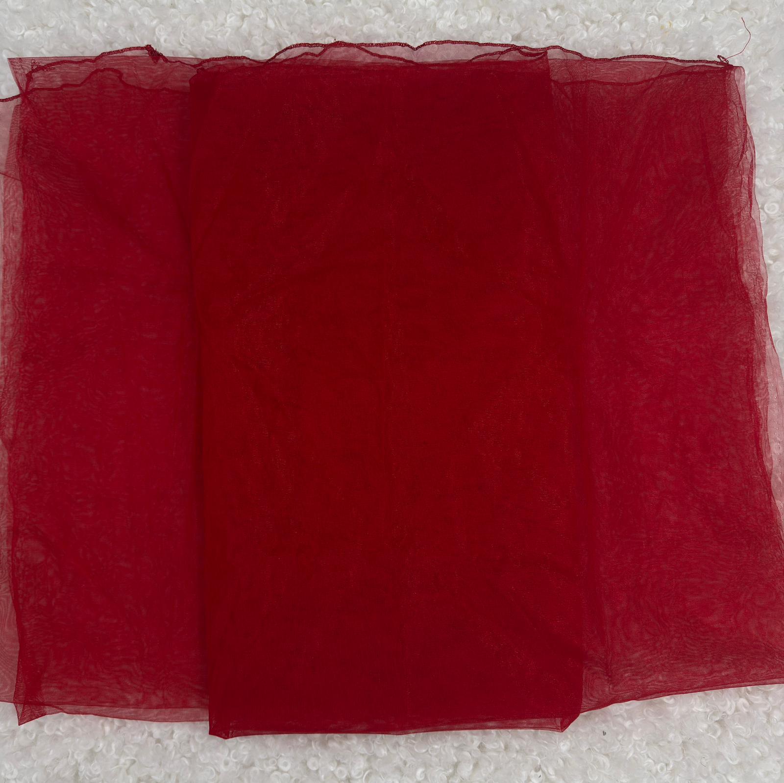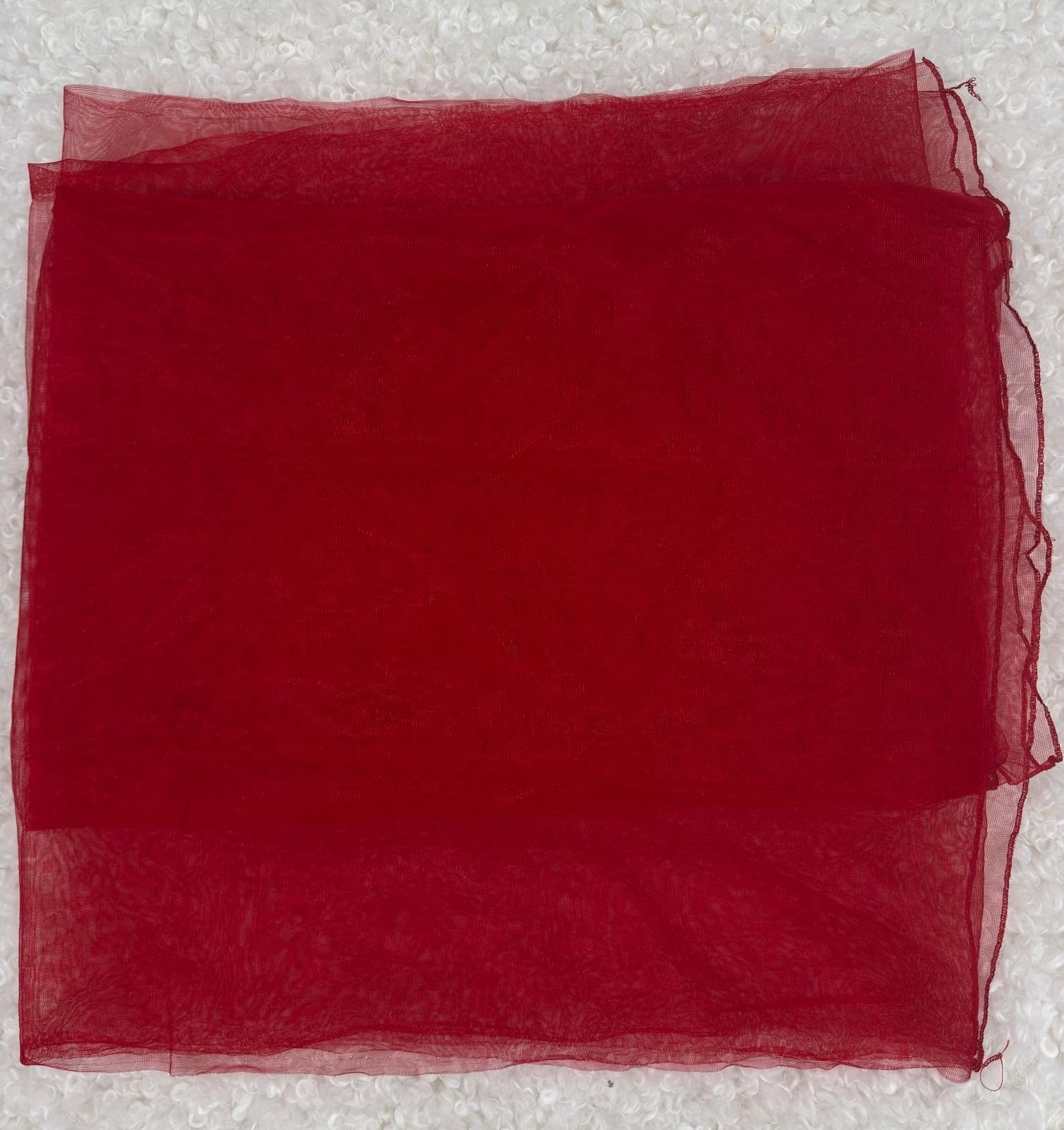 Beautiful red net dupatta, perfect for bridal veil styling. Lightweight, graceful, and ideal for weddings and formal occasions. Size: 92” × 54”.