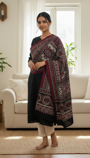 Small Cotton Sindhi Ajrak Dupatta – Traditional & Stylish