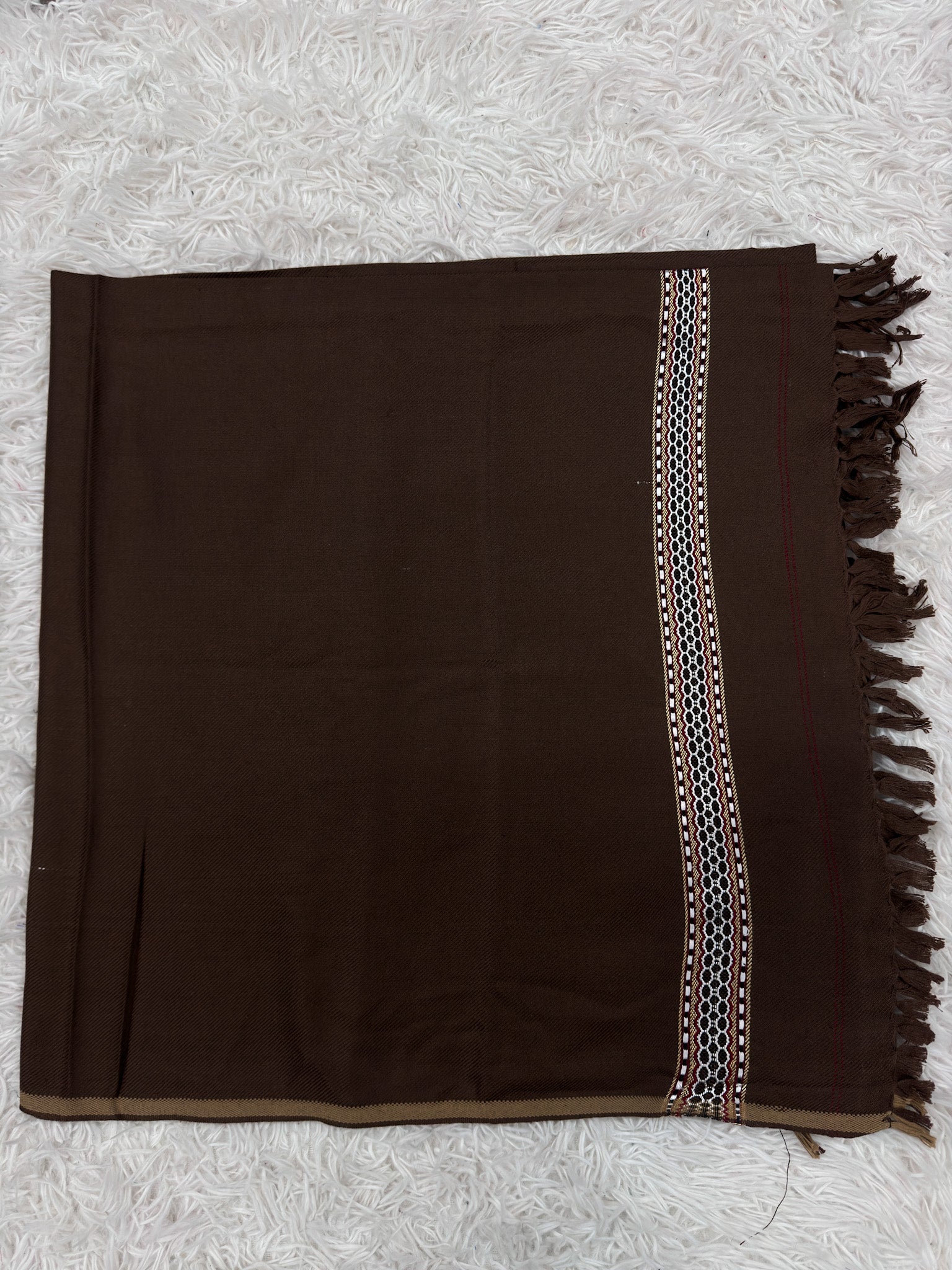 Crafted from soft, high-quality woolen fabric, this men’s shawl offers both warmth and style. The intricate embroidery adds a touch of sophistication, making it a versatile accessory for formal or casual wear. With a generous size, it drapes comfortably, providing both elegance and practicality. Ideal for chilly evenings or adding a refined touch to any outfit.