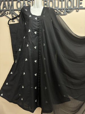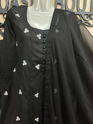 3-Piece Cotton Embroidery Maxi [Black]