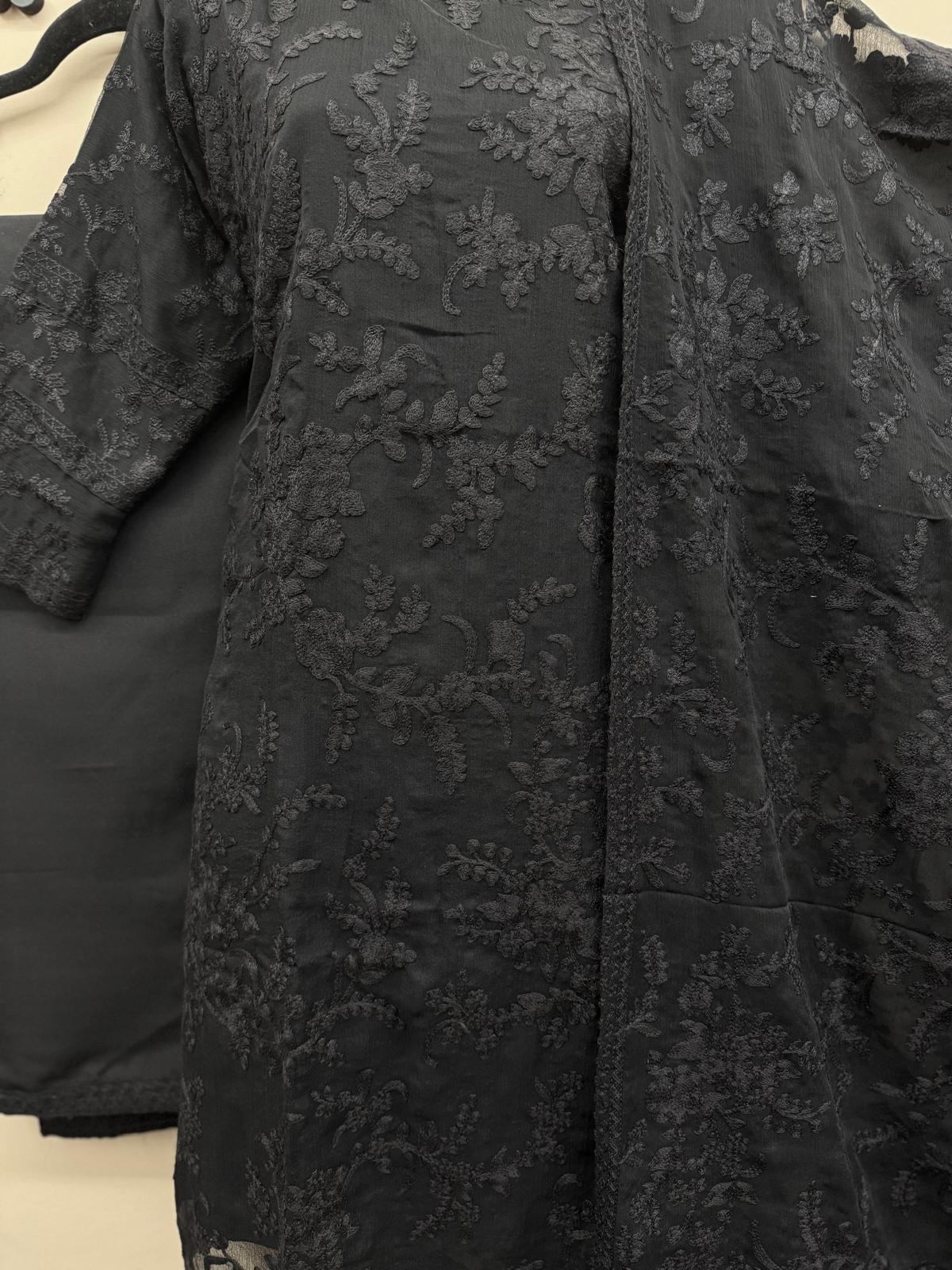 Home Maryam Qasim Boutique Black Chiffon Embroidered 3-Piece Outfit - Classic Elegance for All Seasons