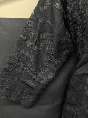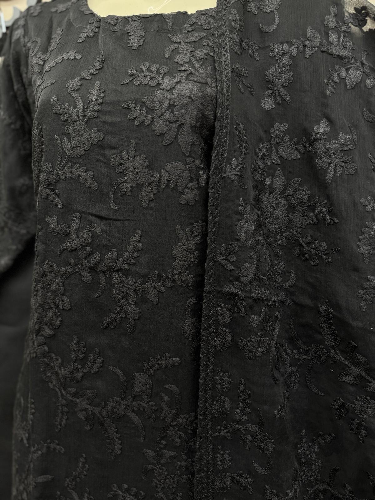 Black Chiffon Embroidered 3-Piece Outfit - Classic Elegance for All Seasons