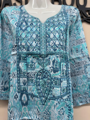 ✨ A light, breezy, and elegant choice that blends modern print with traditional embroidery, keeping you comfortable and stylish all day.