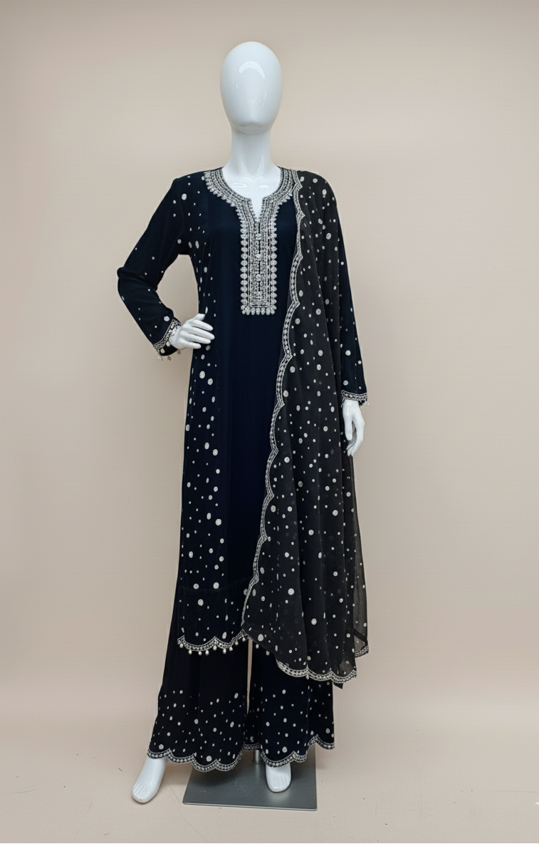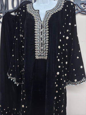 Elegant Black 3-Piece Velvet Embroidered Ensemble for Women – Luxury Formal Wear with Chiffon Dupatta