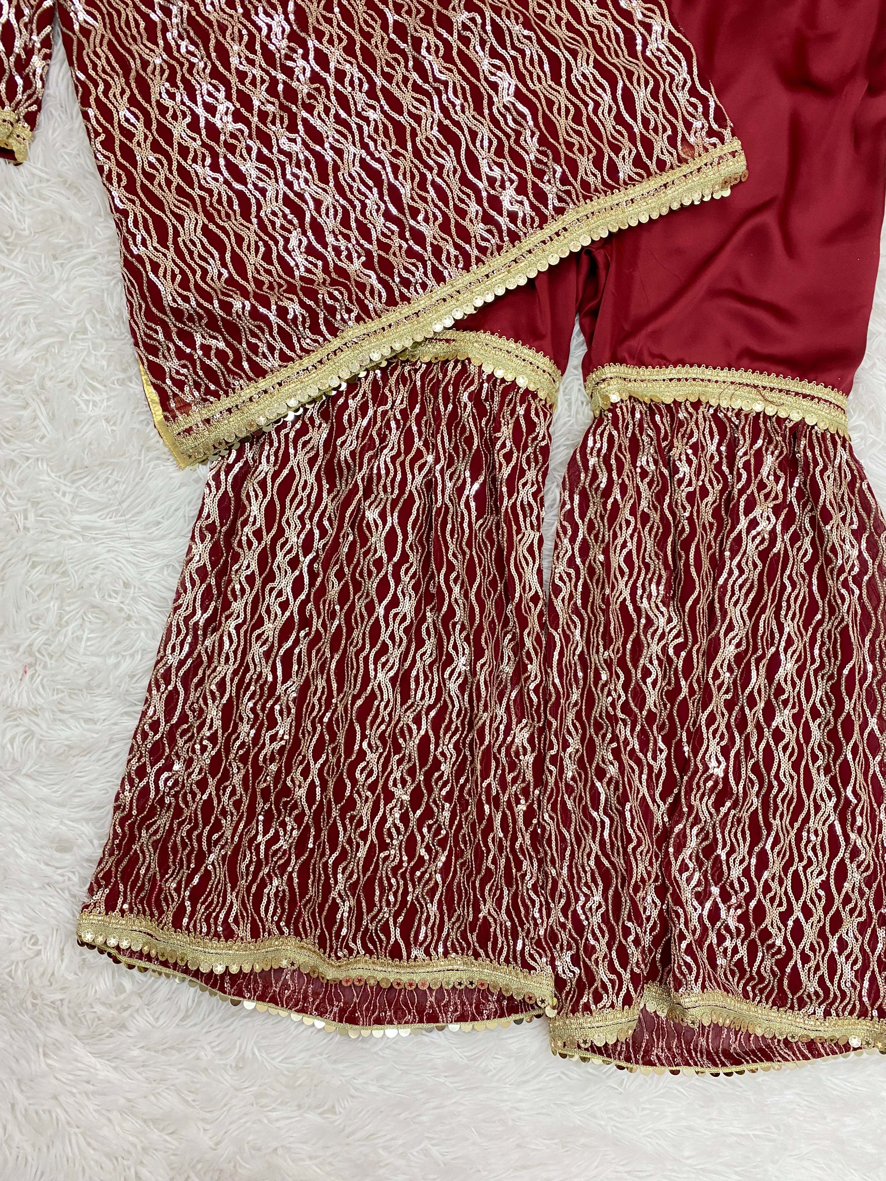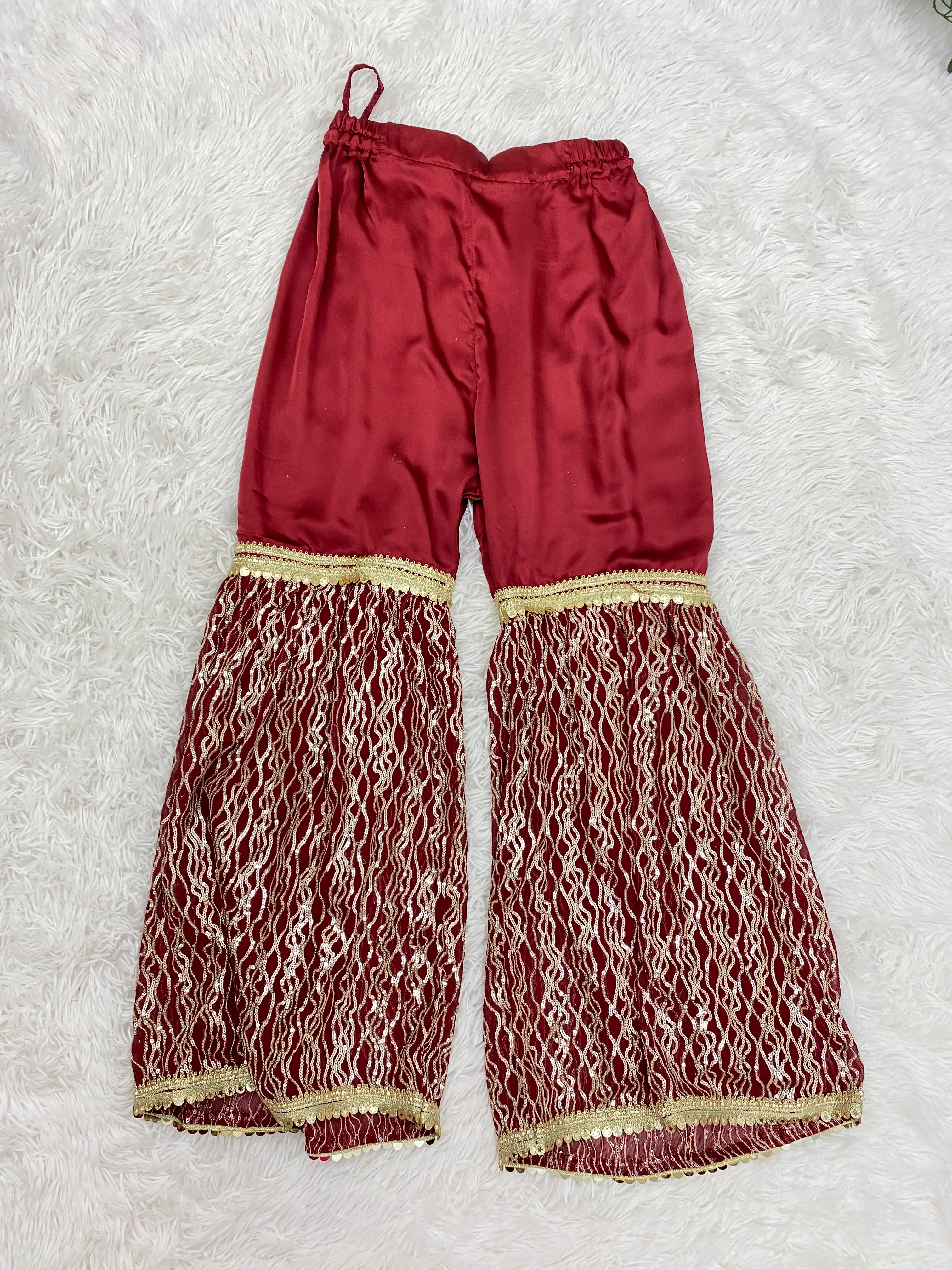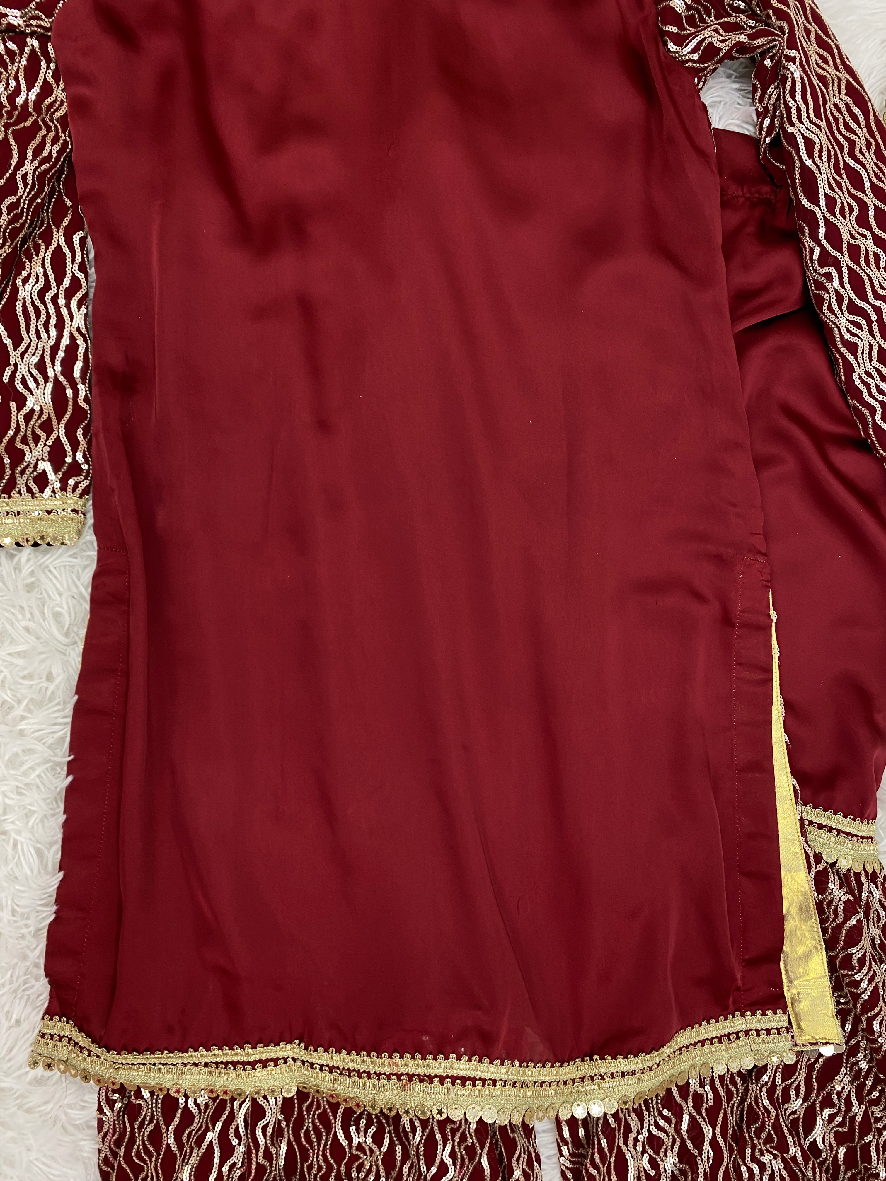 Luxury Maroon Georgette/Silk Gharara 3PC
