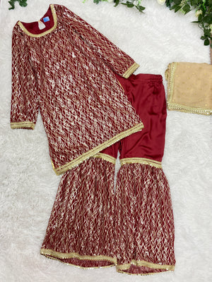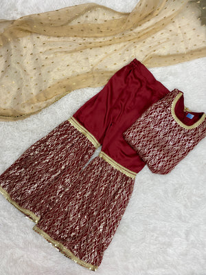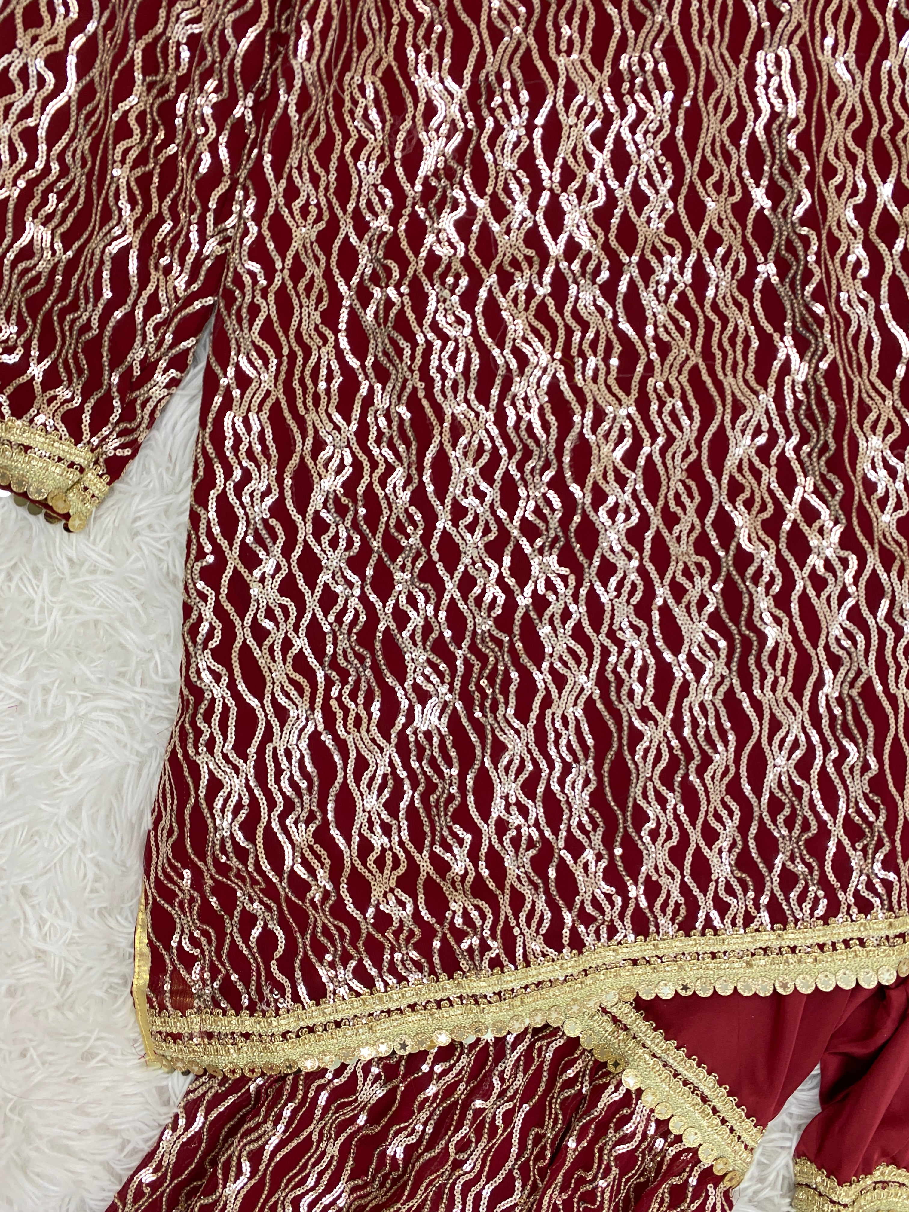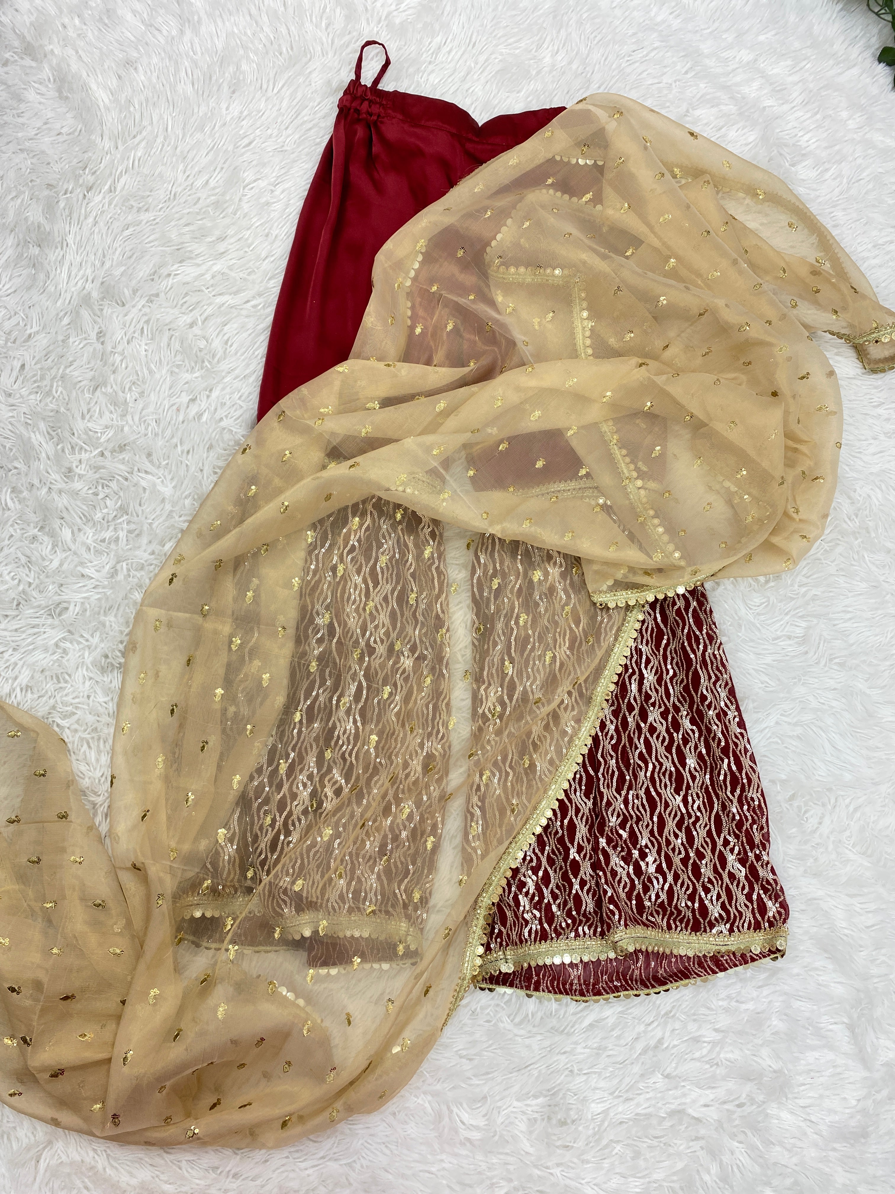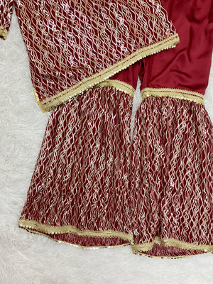 Luxury Maroon Georgette/Silk Gharara 3PC