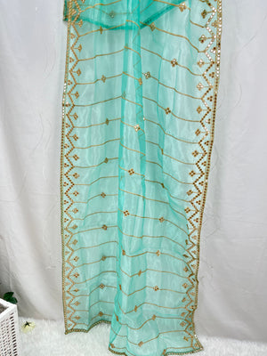 Turquoise Organza dupatta with zari and mirror