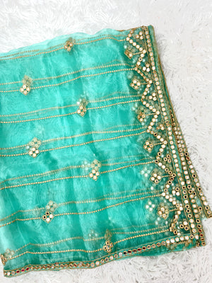 Turquoise Organza Dupatta with Mirror
