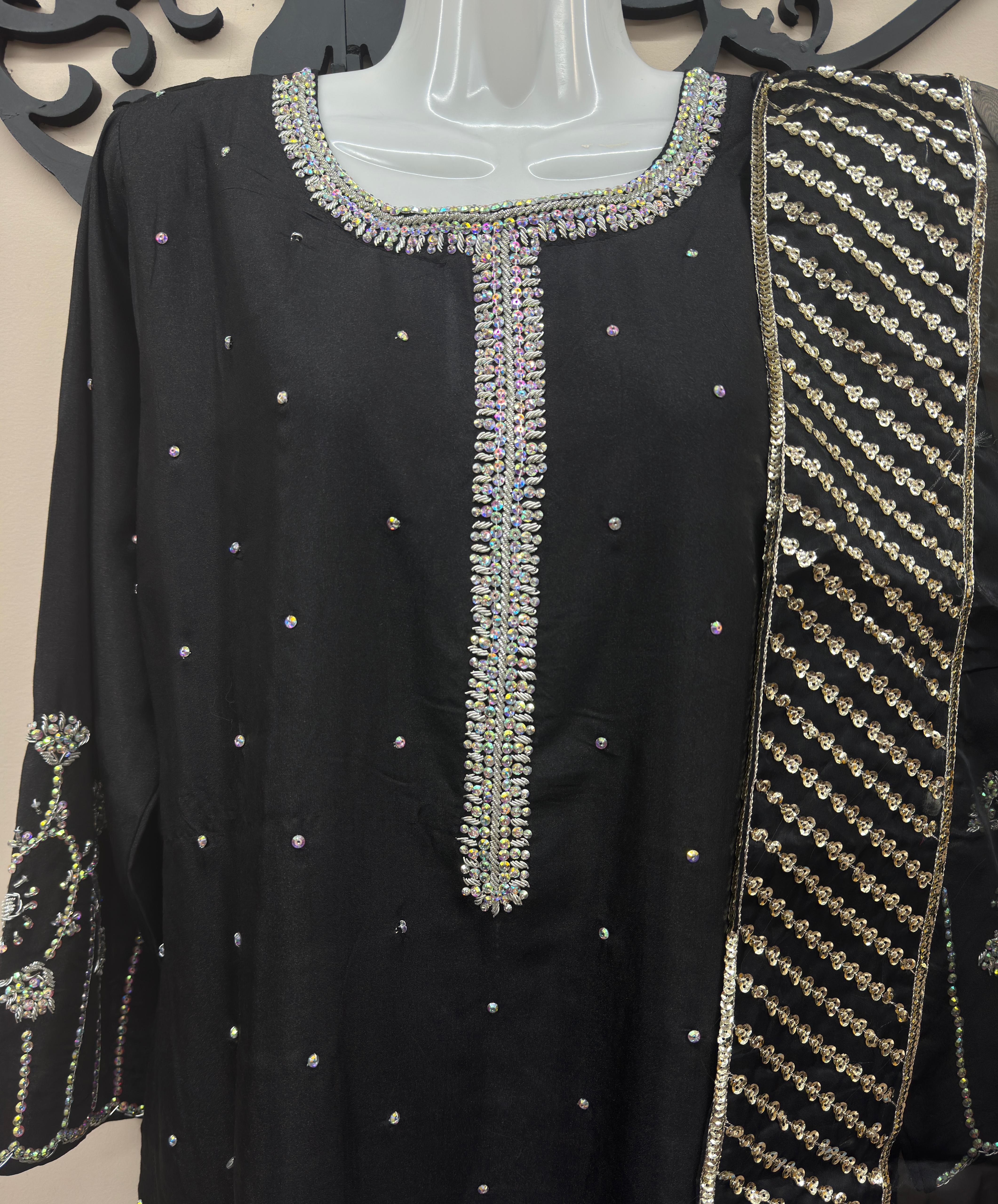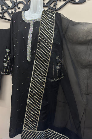 Erum Eman Women’s Black 3 Piece Embroidered Suit – Party Wear