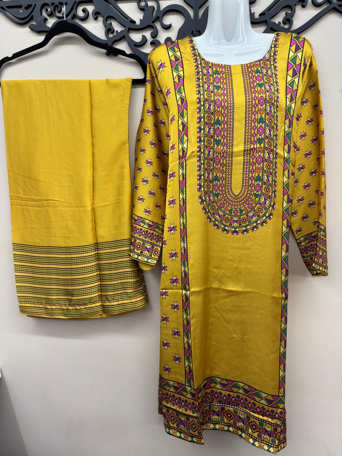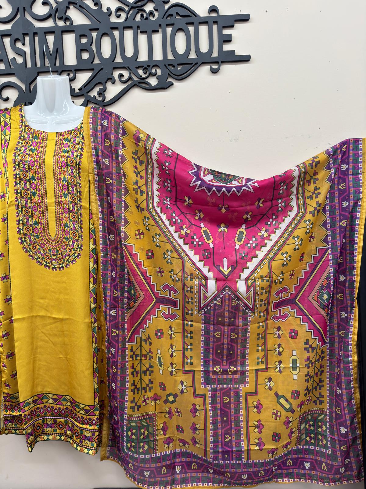 Discover elegance with this premium 3-piece Erum Eman silk printed outfit, designed for women who love classy prints, soft fabric, and premium stitching. Made with smooth and breathable Erum Eman silk, this suit includes a beautifully printed shirt, matching silk palazzo trousers, and a lightweight chiffon printed dupatta — creating a stunning look for any occasion.