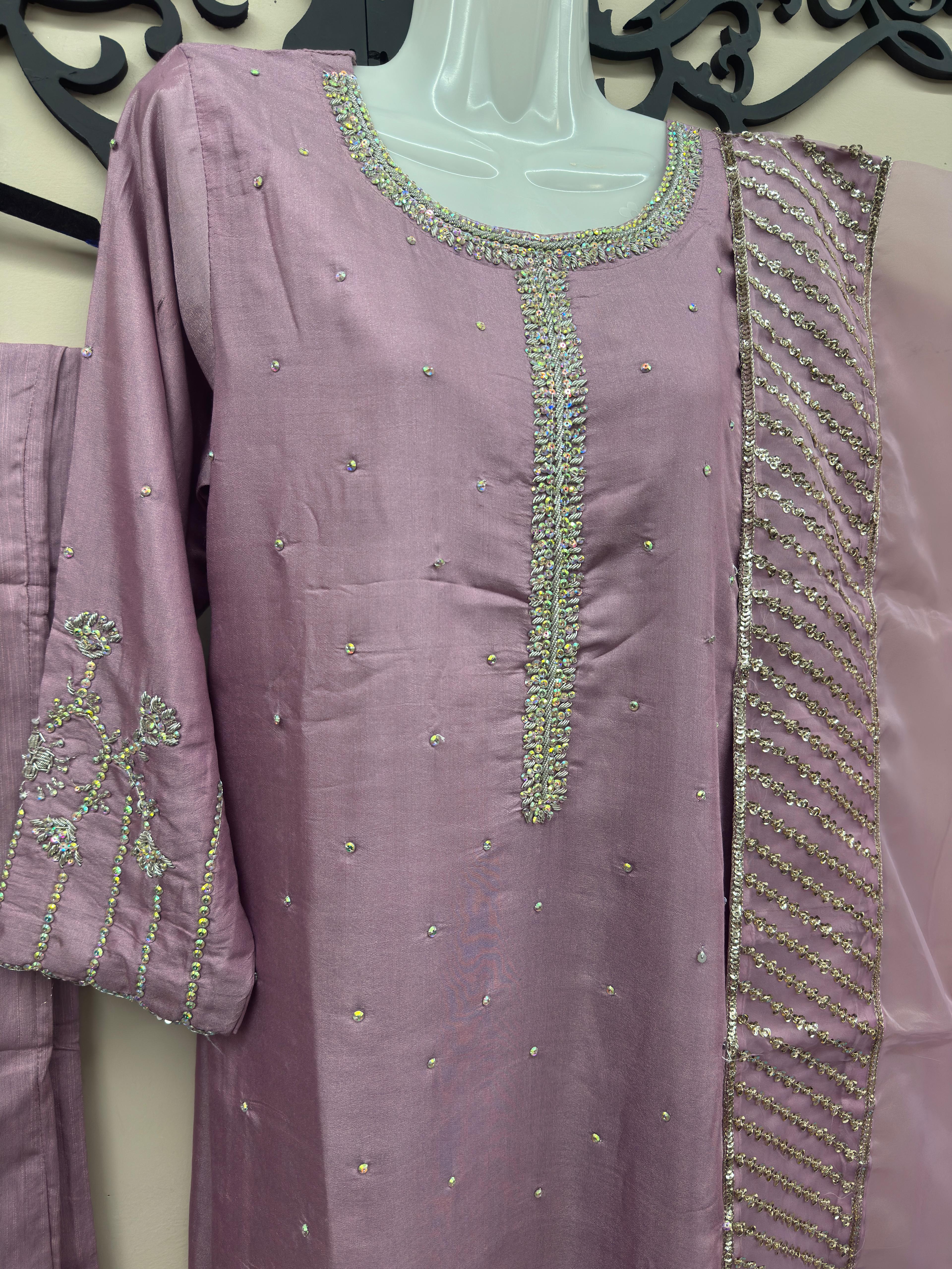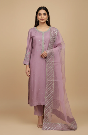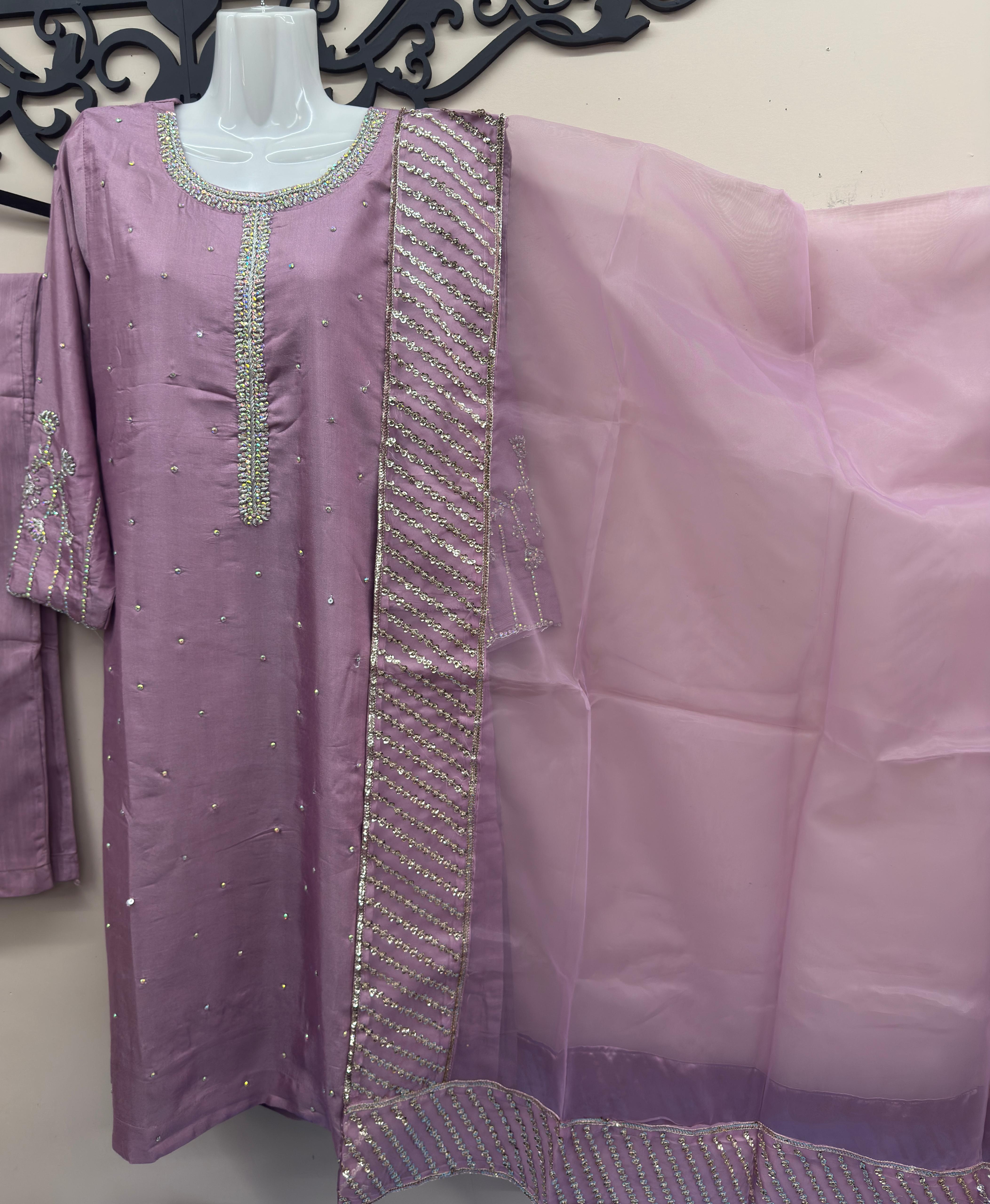 Dupatta features 4-side hand-worked embroidered borders with sequin detailing