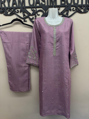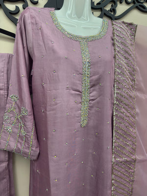 Erum Eman Women’s Pink 3 Piece Embroidered Suit – Party Wear