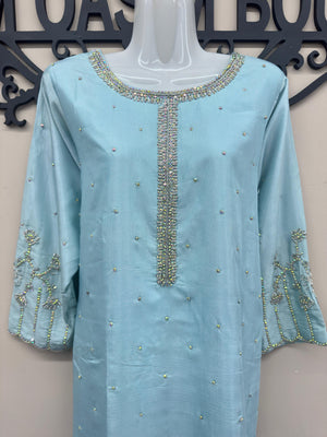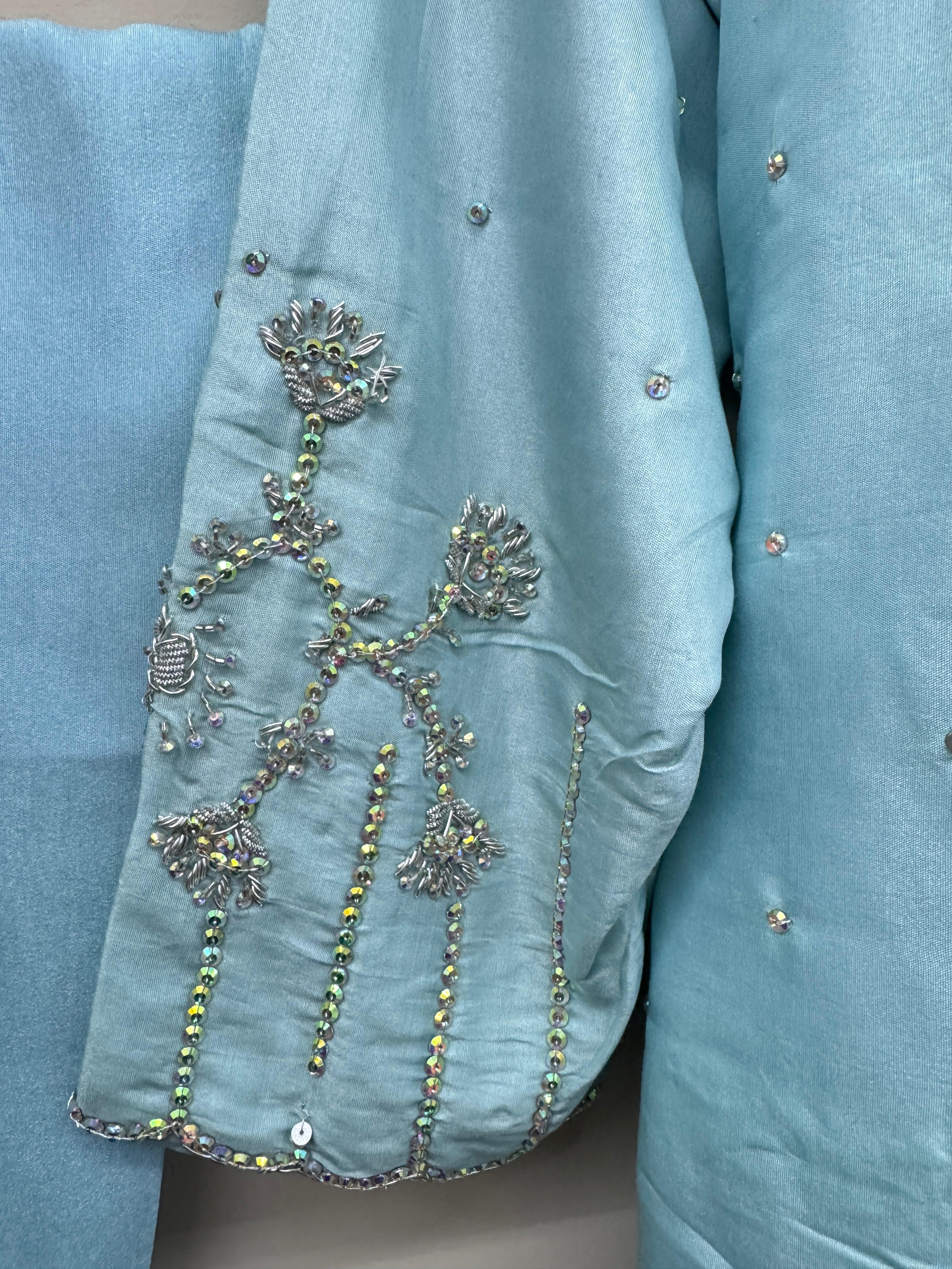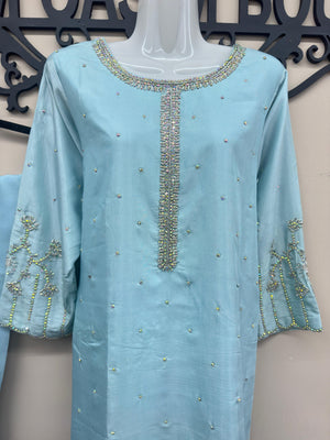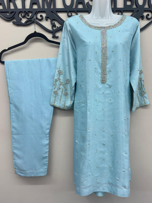 Erum Eman Women’s sky Blue 3 Piece Embroidered Suit – Party Wear