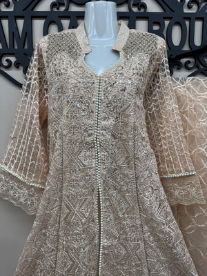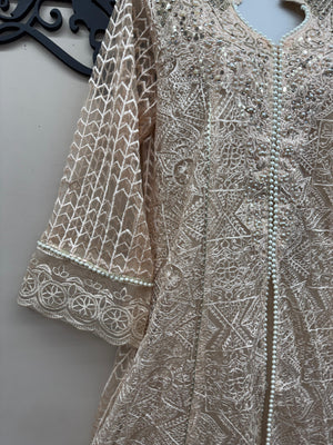 Fabric: Net Embroidered Shirt (with sequins, beads & gota lace work) | Comfortable Crepe Trousers | Embroidered Net Dupatta