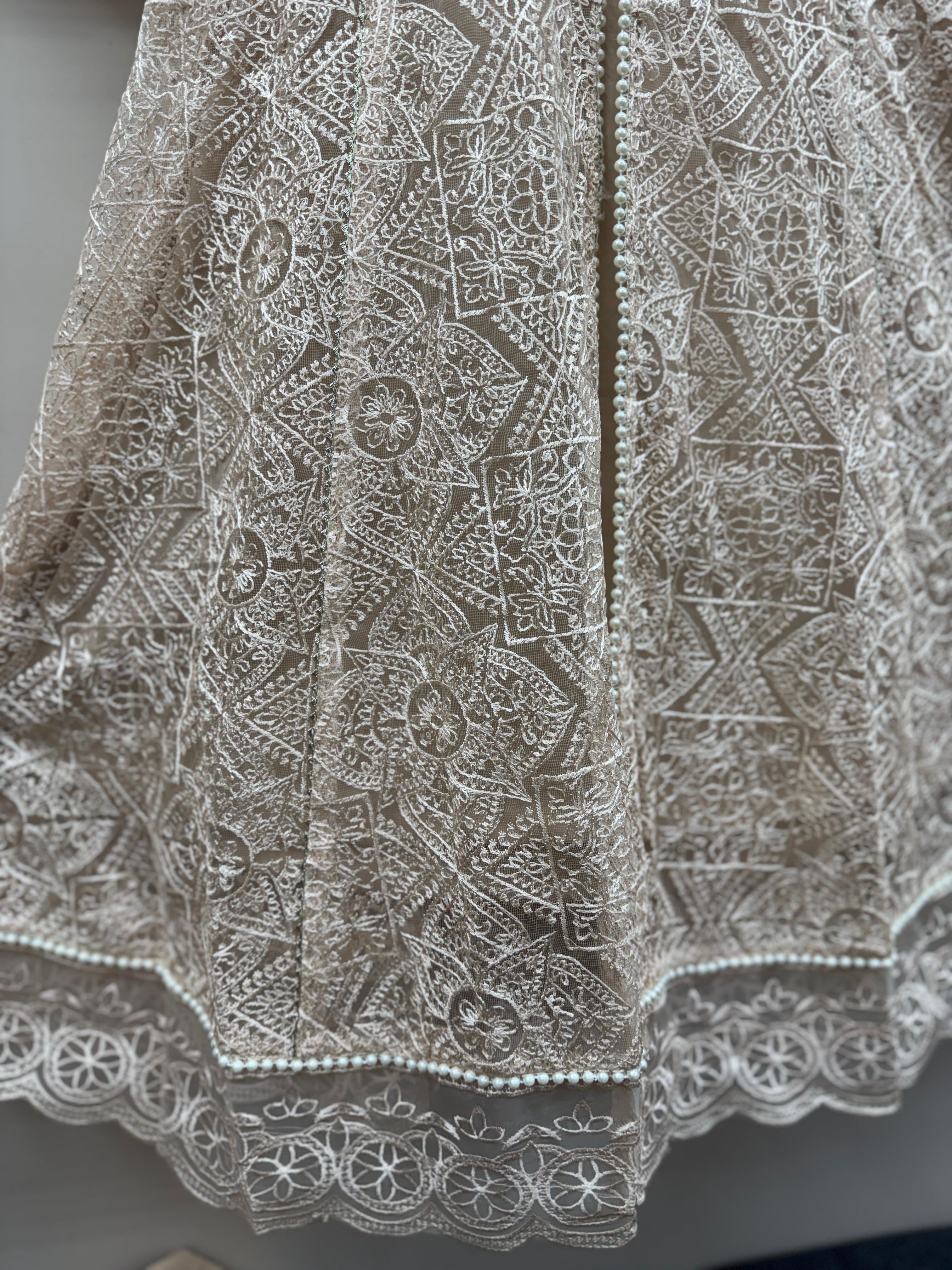 Design: Front & back full embroidery with pearl and bead detailing