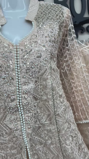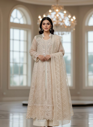 Elevate your wardrobe with this luxury 3-piece Pakistani formal outfit, a perfect blend of tradition and modern elegance. Designed in premium net embroidered fabric layered over a soft inner lining, this ensemble is ideal for weddings, festive parties, and formal occasions in Canada.