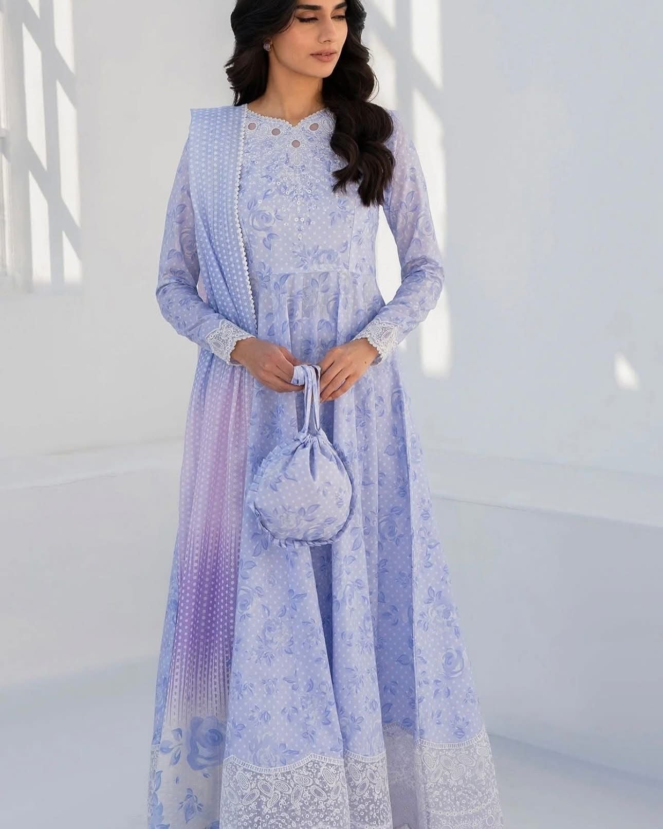Home New Arrivals 3-Piece Double Georgette Printed Maxi with Embroidery Patch & Dupatta
