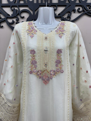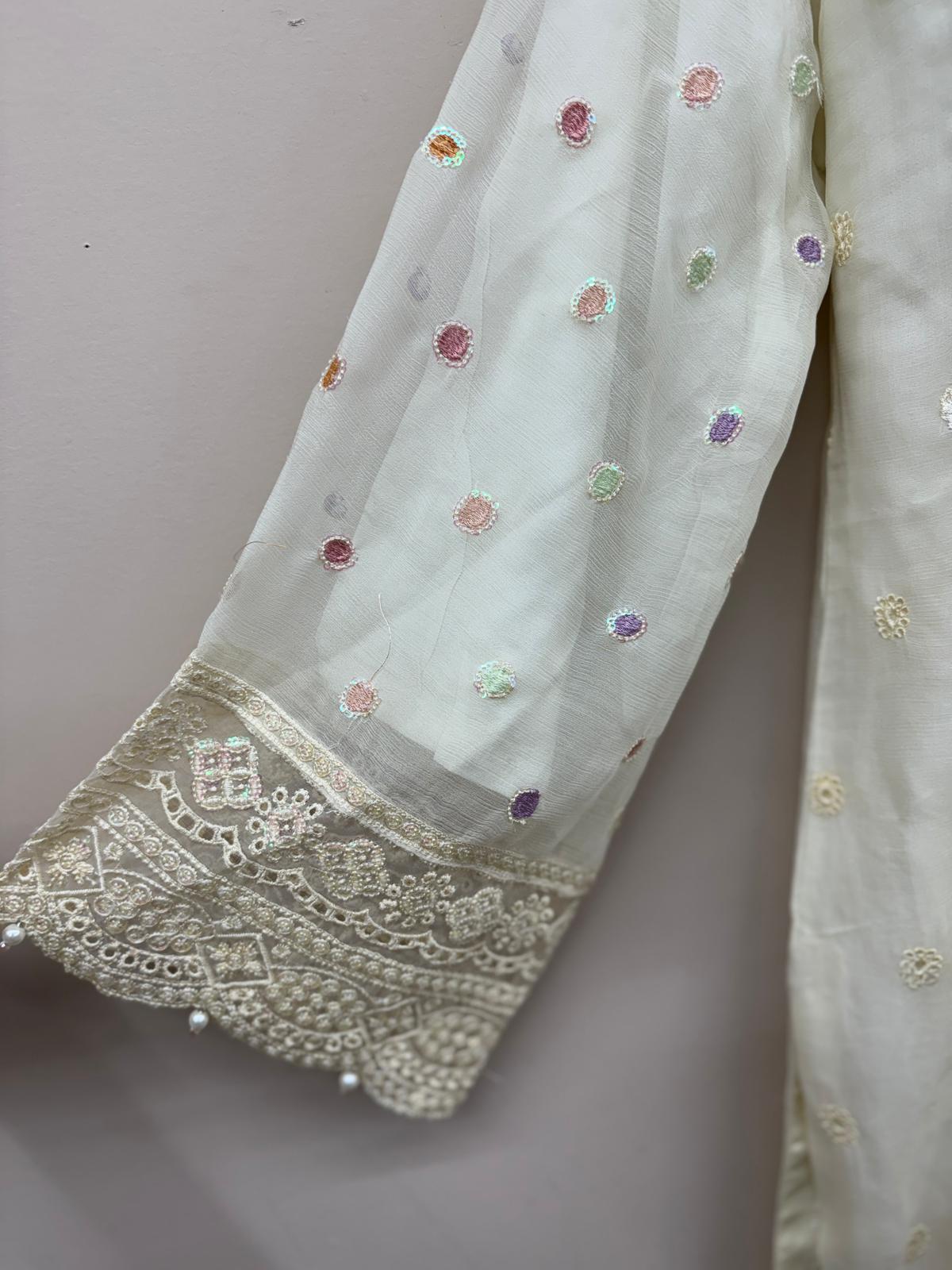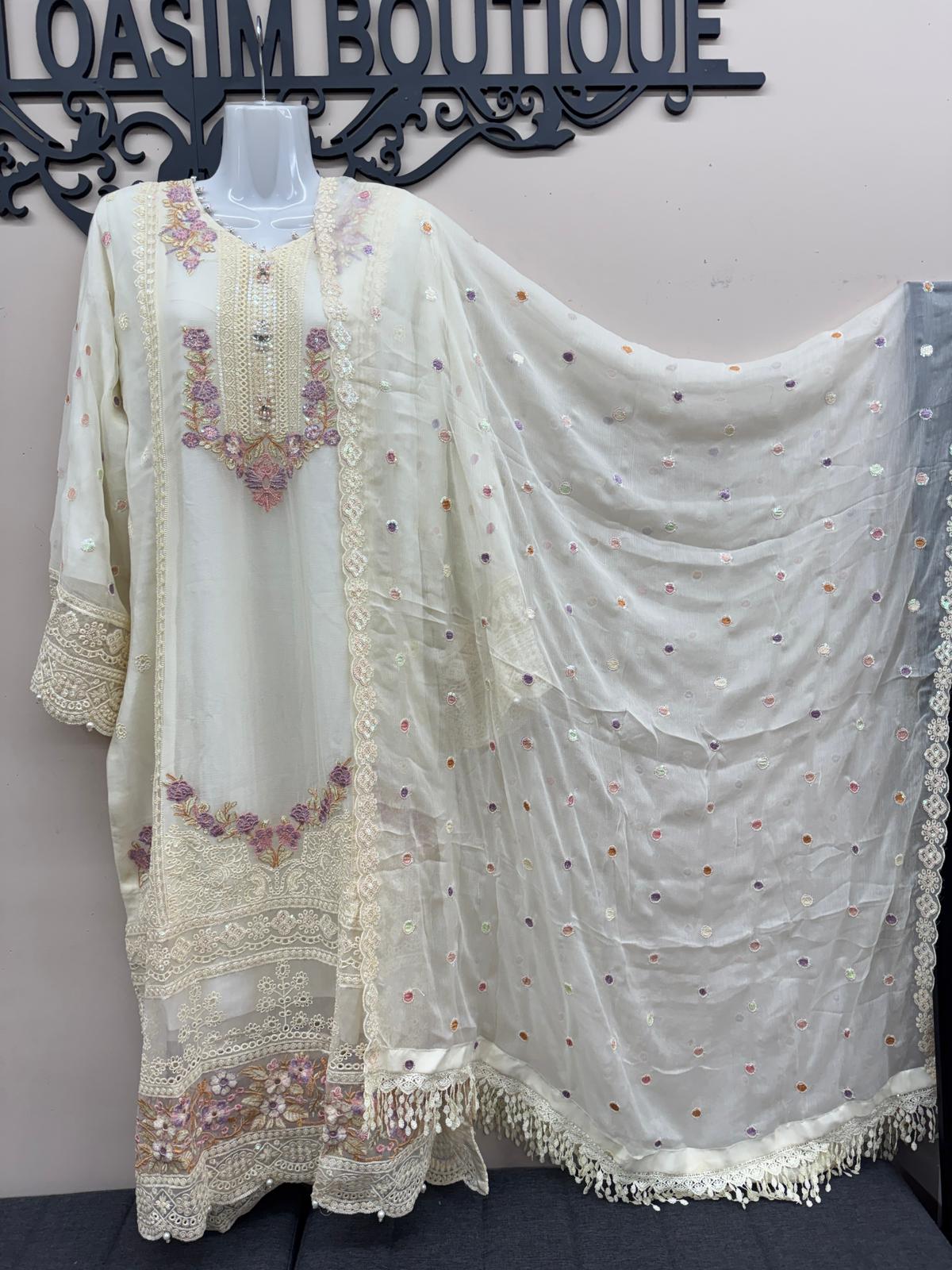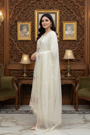 4 Pcs Formal Chiffon Embroidered Suit with Potli Bag