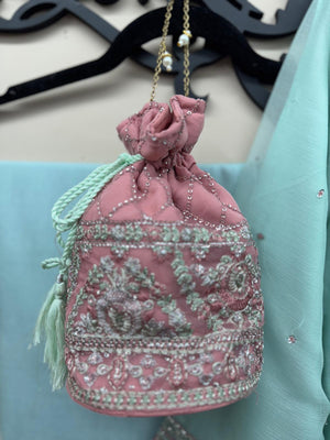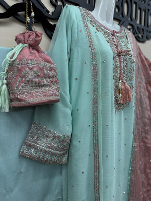 Luxury Chiffon Embroidered 4Pc Formal Dress with Potli Bag (Copy)