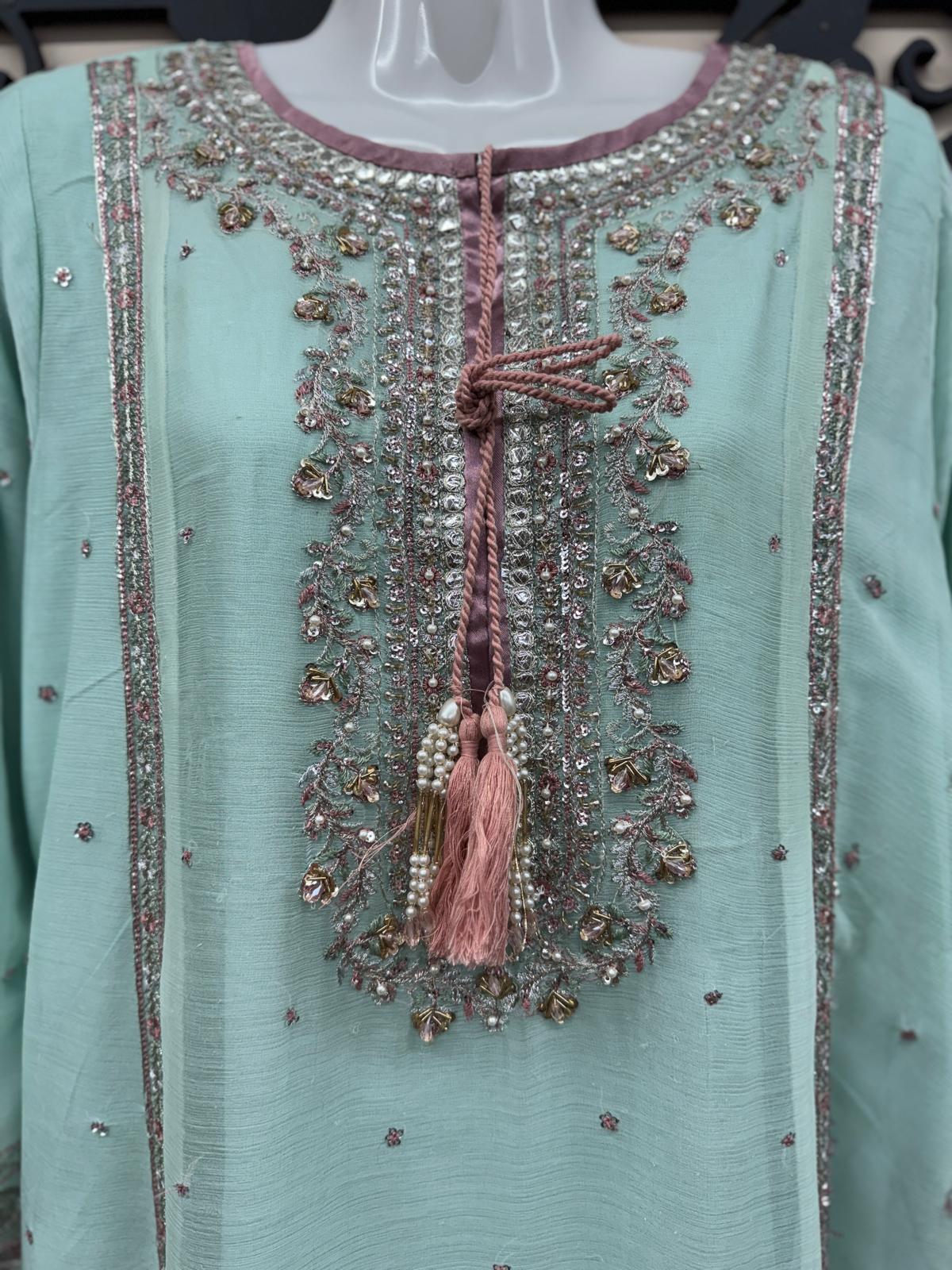 Embroidered Neckline with Hand Embellished Beads & Sequins