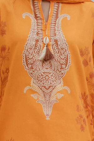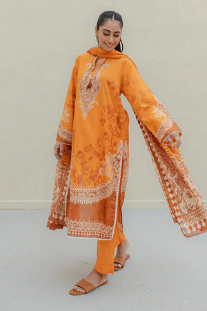 Home Brands Zellbury Orange Lawn 3PC Suit – Printed Kurta, Trouser & Dupatta