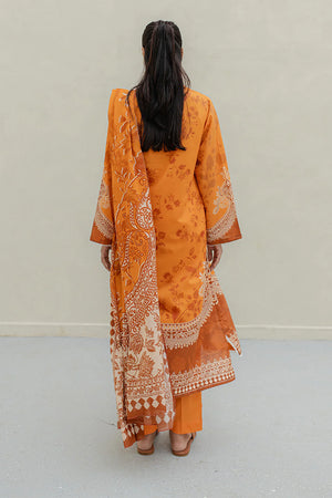 Zellbury Orange Lawn 3PC Suit – Printed Kurta, Trouser & Dupatta