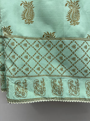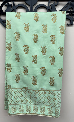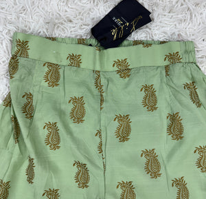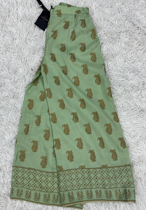 Elevate your everyday or festive look with these original Sapphire silk cotton trousers. Featuring a stunning block print design, these flared pants are crafted from a premium silk-cotton blend for a soft and breathable feel. Finished with elegant lace detailing at the bottom, they offer both comfort and charm—perfect to pair with your favorite tunics or kurtas.