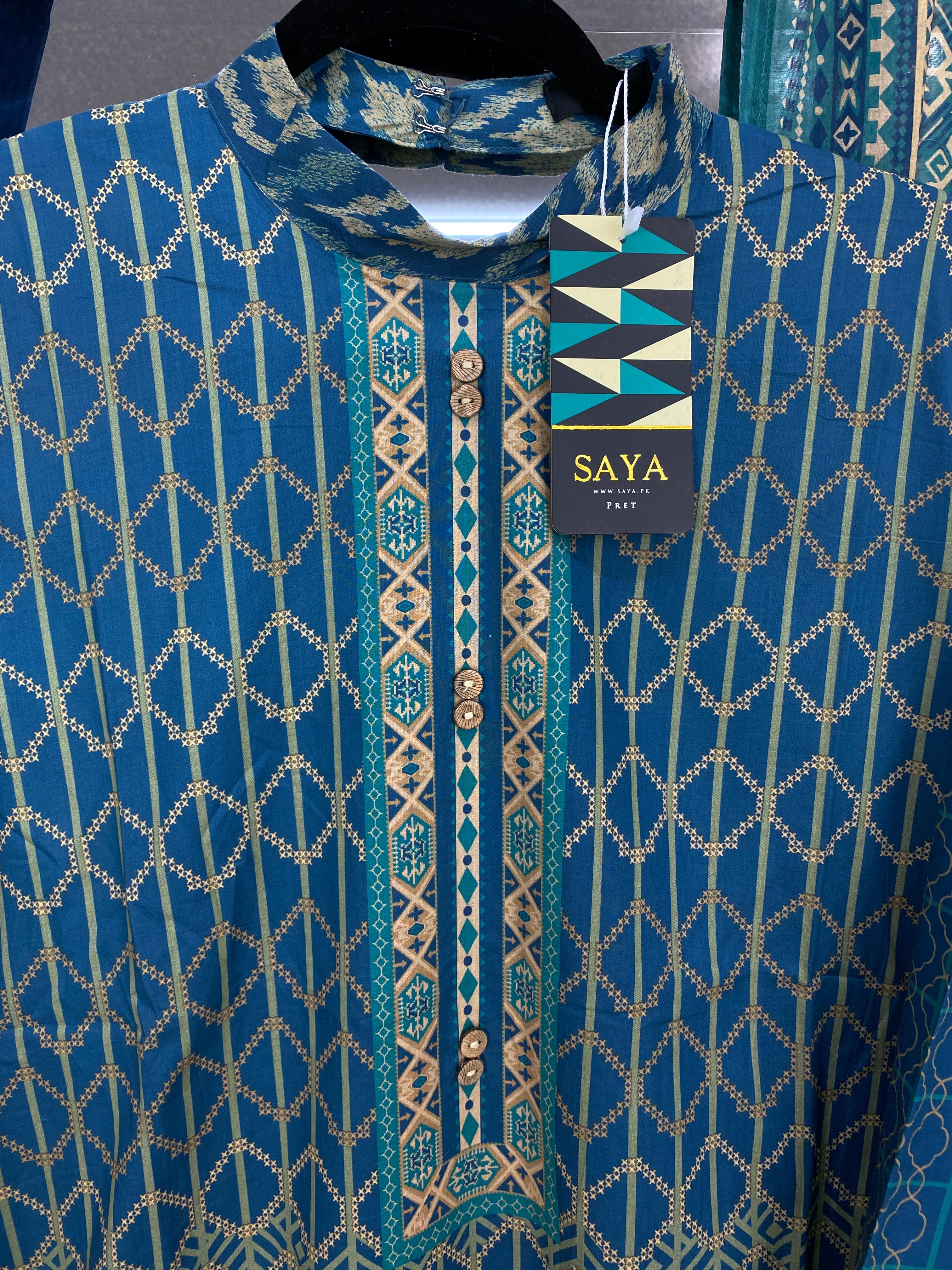 Material is comfortable, vibrant, and light. Perfect for Spring and Summer. Collared neck