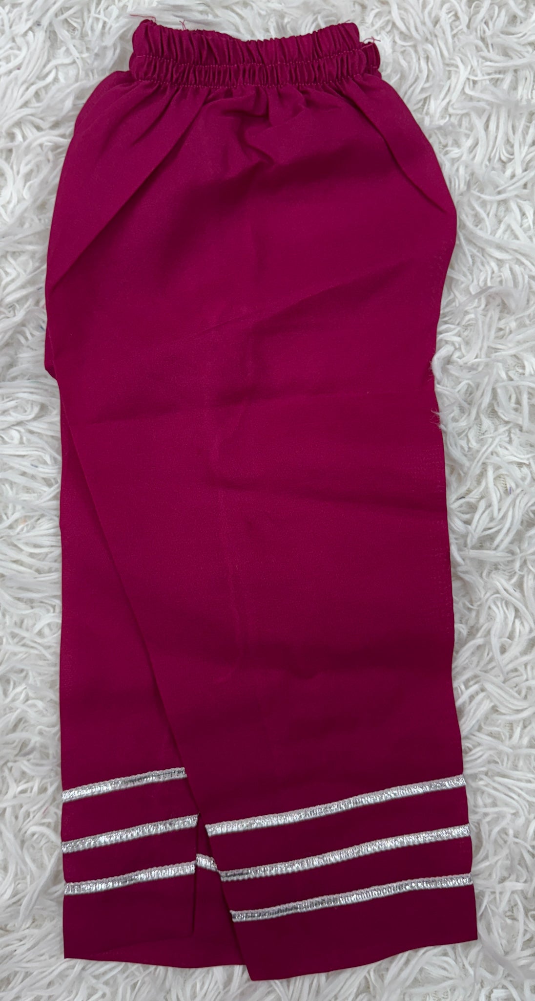 This beautiful 3-piece A-line style chiffon embroidered outfit is the perfect formal ensemble for any special occasion. The shirt features full front and sleeve embroidery with delicate thread work and shimmering sequins, all lined with soft crepe for comfort. It’s finished with elegant silver dori piping for a refined touch. The matching crepe trousers are adorned with gota lace, and the lightweight chiffon dupatta is trimmed with silver gota lace, completing the graceful look. A lovely choice for weddings, Eid, or festive celebrations.