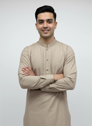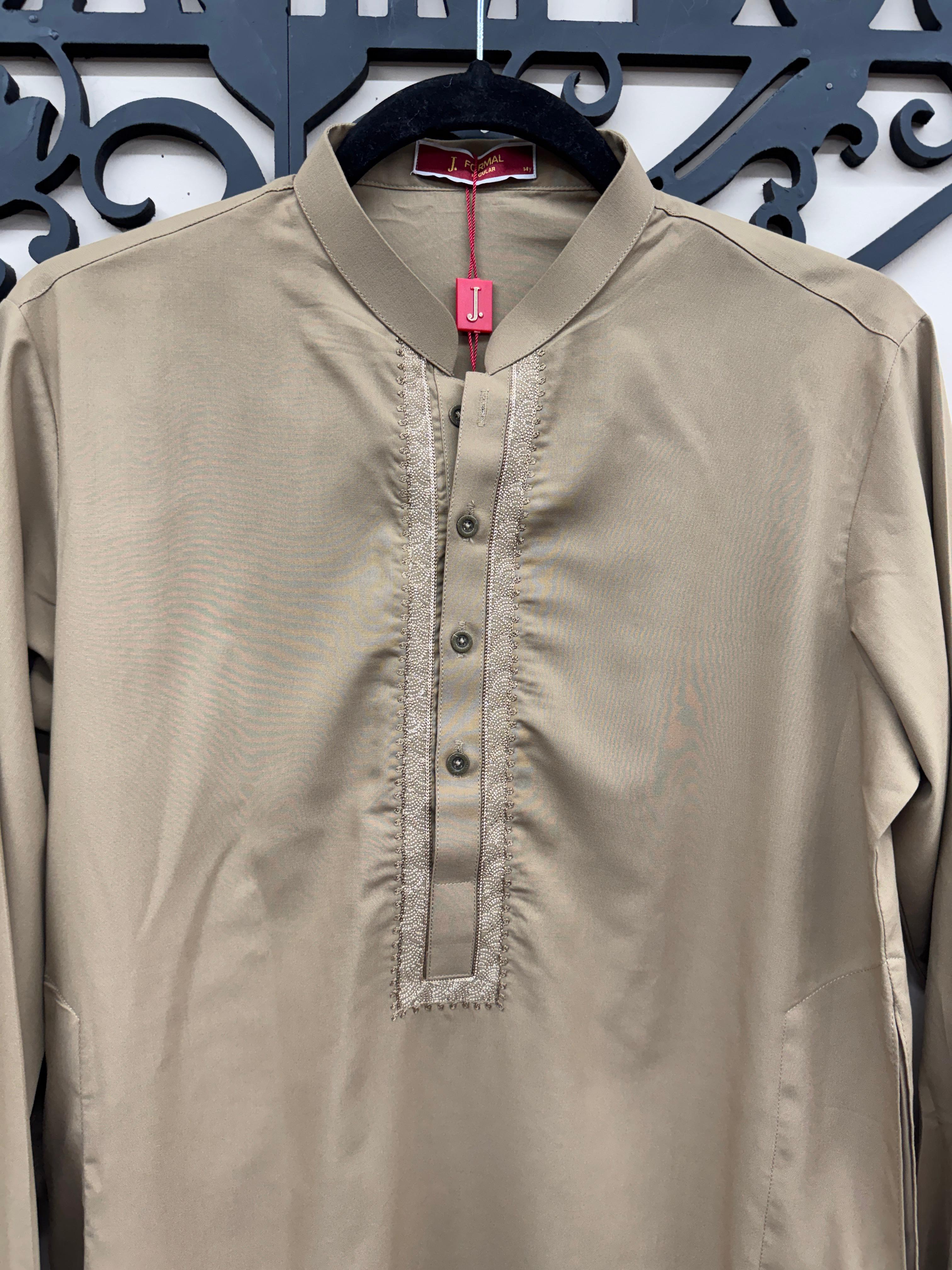 Give your young one a classic look with this J. Teens Kameez Shalwar Set, tailored in a premium beige wash & wear fabric for both comfort and elegance. Designed by J. (Junaid Jamshed), this outfit brings together traditional Pakistani styling with the practicality and softness ideal for everyday wear or special occasions.