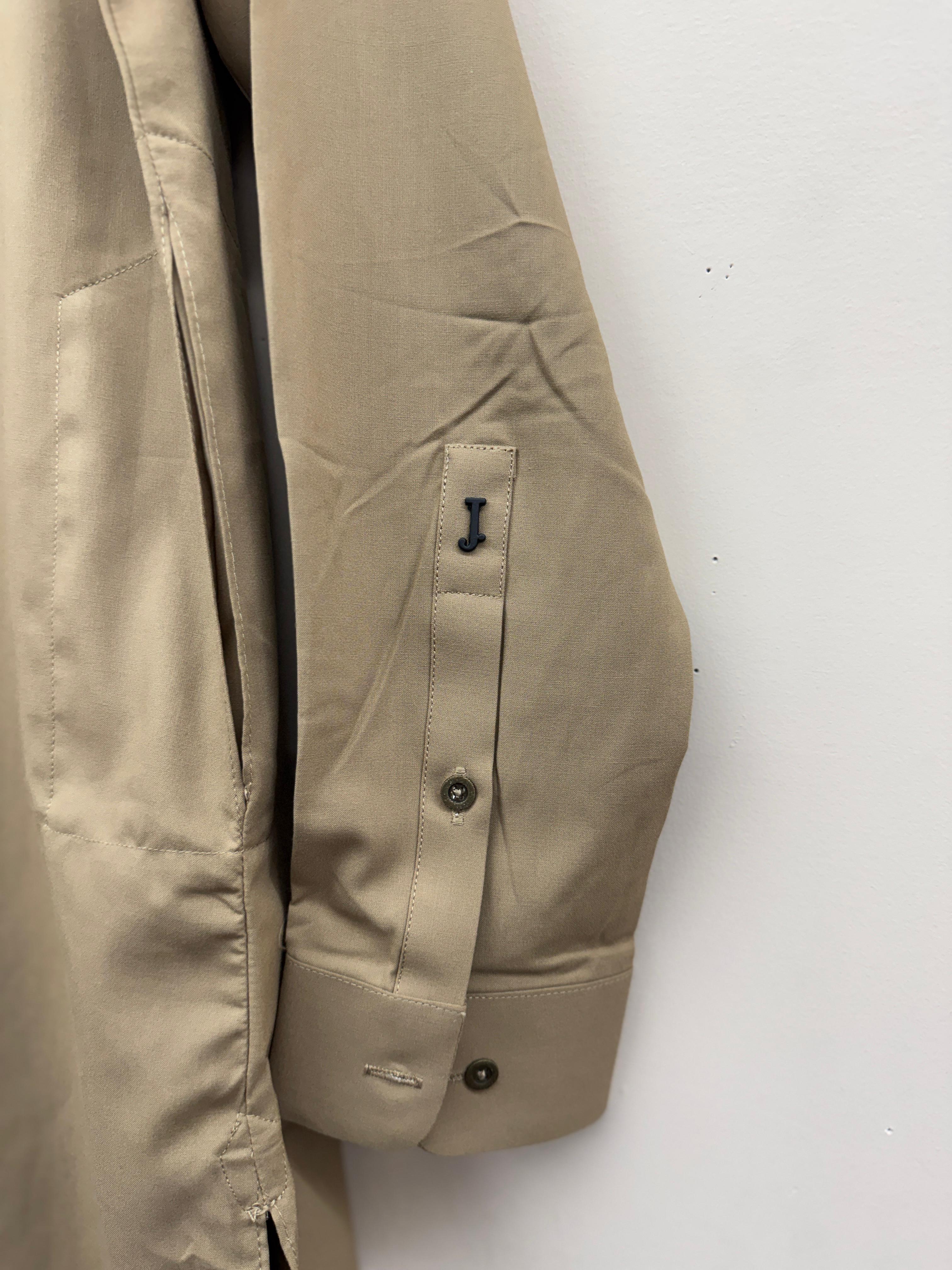 Embroidered placket and cuff detailing for a refined finish